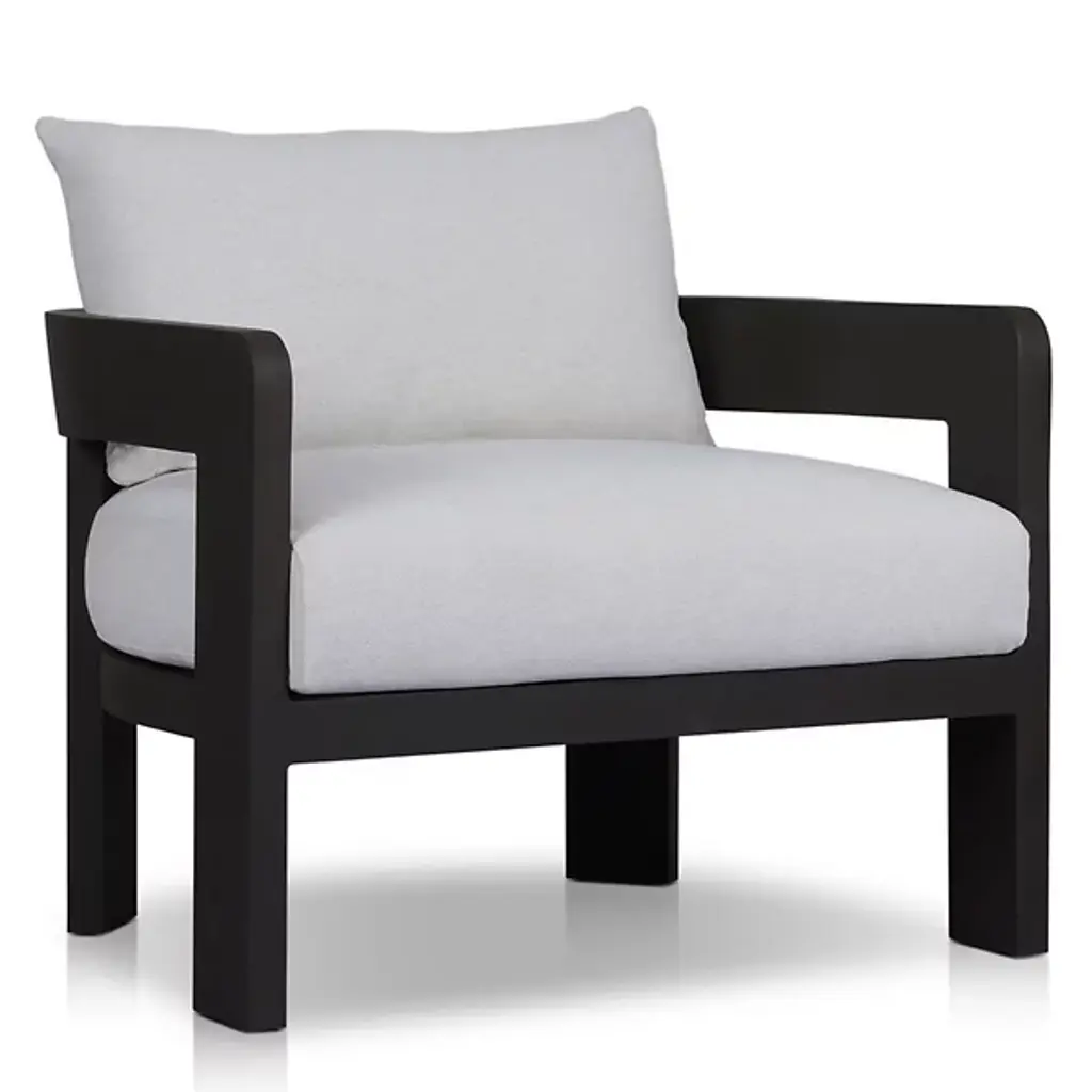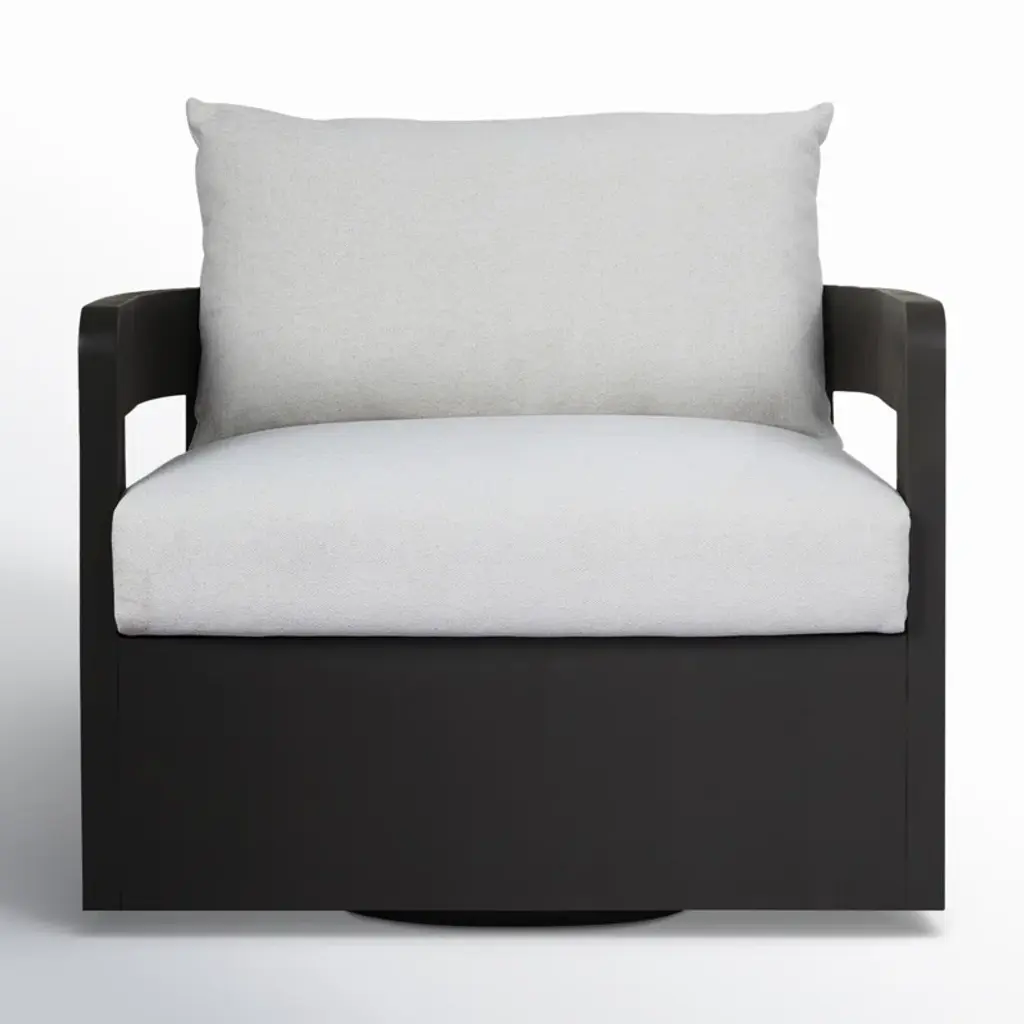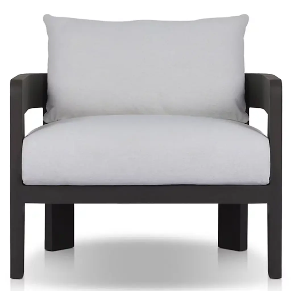 The Jackson Outdoor Armchair from Four Hands brings indoor comfort to outdoor spaces. Polypropylene fabric covers high-density foam and fiber batting, while aluminum framing ensures stability. The barrel back design hugs the body, offering support through curved lines. The foam core maintains its shape, while the metal base anchors the piece firmly. Each component meets the demands of outdoor use, though a protective cover keeps this chair pristine when not in use.