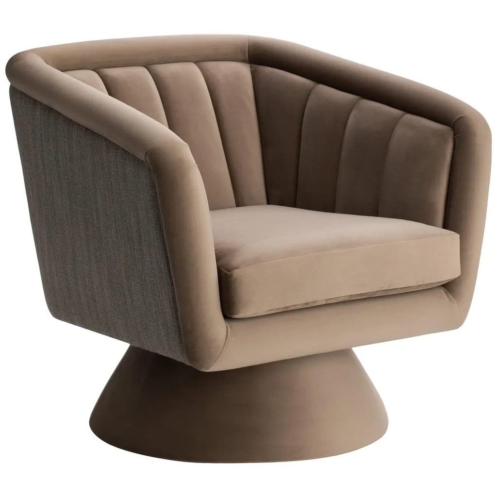 Utterly captivating, the jacquard Armchair perfectly encapsulates luxury and glamour. Fanning out into an embracing backrest with pristine piping, this opulent Art Deco-inspired armchair is destined to impress in any interior. The sturdy metal frame and conical base are generously padded with multi-density polyurethane and covered with premium dove-gray fabric that is soft-to-the-touch. The tailored backrest is reinforced with memory foam for additional comfort that does not compromise on style.