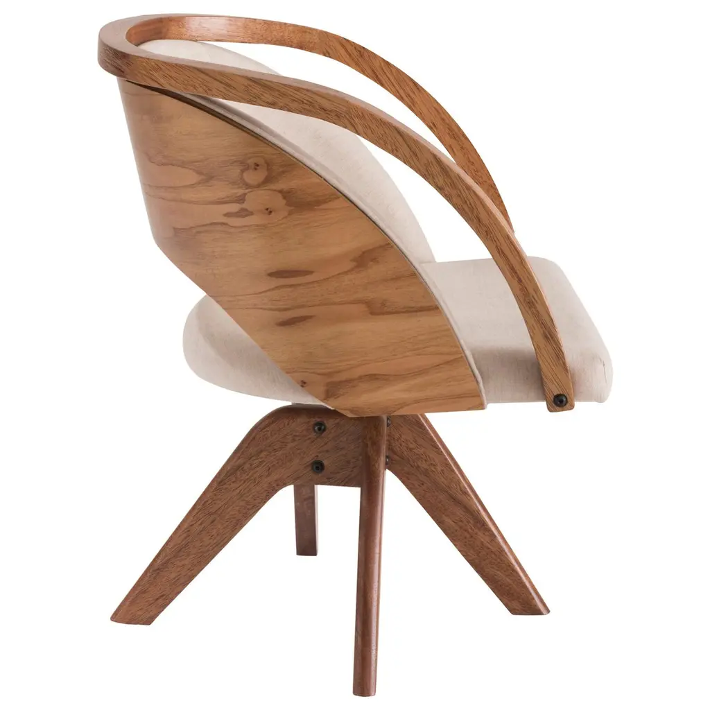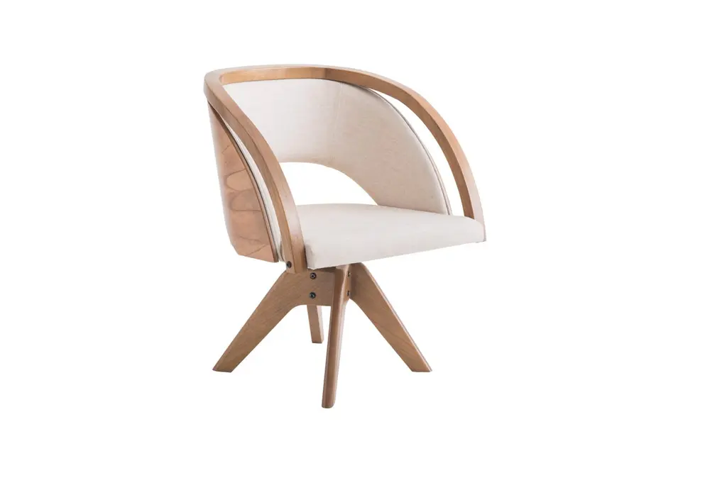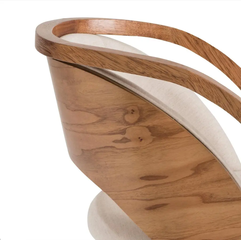 The Jasmine armchair has feminine and sophisticate shapes. It's delicate and practical by the rotating movement.Jasmine armchair has sinuous lines, translating the essence of well-being and elegance to the design piece.It has a rotating wooden feet, made in tauari wood - Brazilian reforest wood.The details in natural wood frame the arms that give strength and a unique personality to the design, giving comfort and fluidity to the armchair.The backrest is made in wood multilaminate recovered with cinnamon wood veneer.The seat is upholstered in linen fabric - 60% linen 40% polyester.With the composition of elegant and timeless raw materials, the Jasmim armchair is versatile, and can be used in the living room, at the dining table or even in bedrooms.Discover all the other pieces that match with the Jasmim armchair in our storefront, and be enchanted!