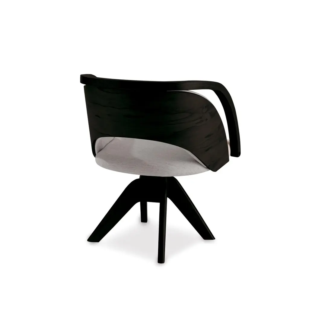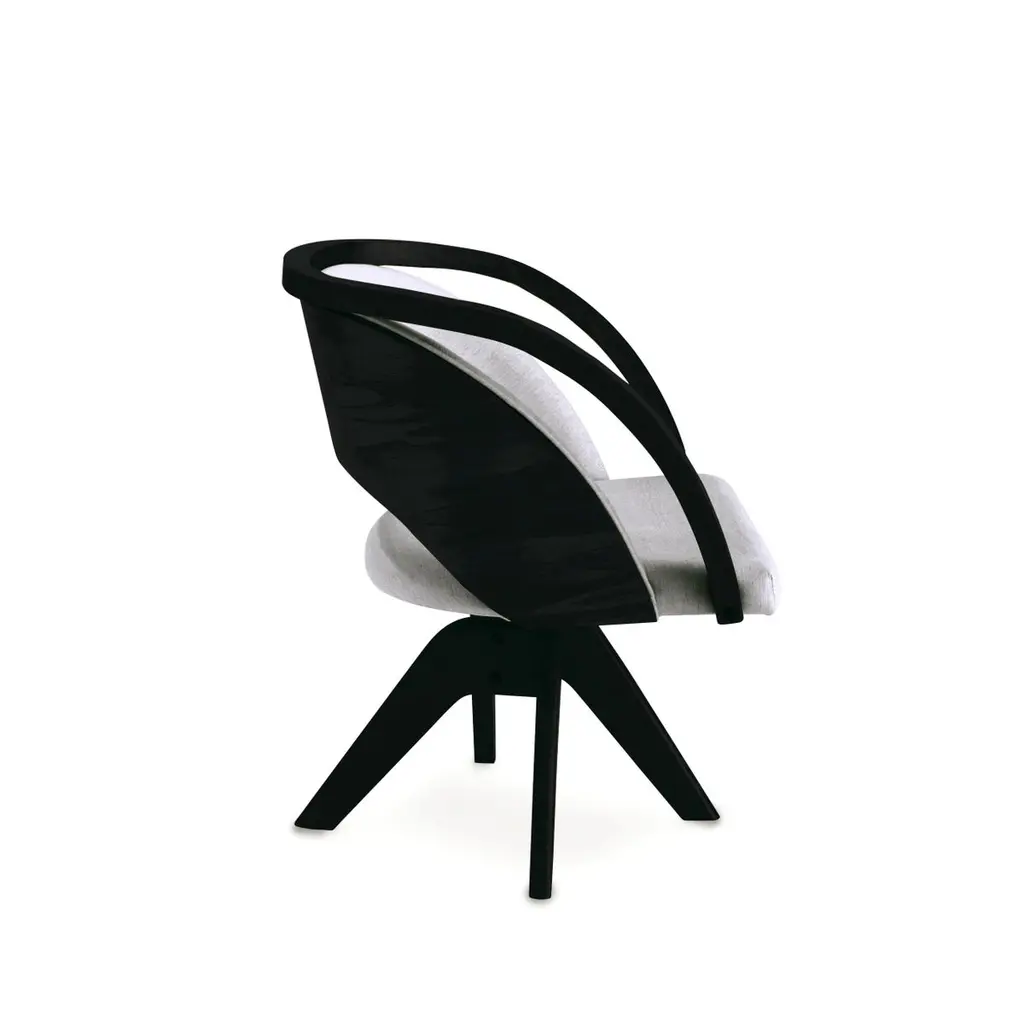 "Jasmin" Swivel Armchair In Black Wood And Linen Fabric