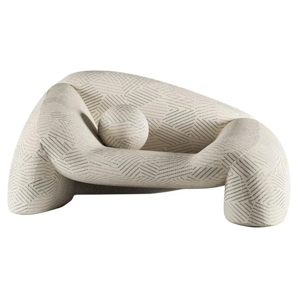 Jell Armchair in Kvadrat Razzle Dazzle Fabric by Alter Ego StudioDimensionsW 155 cm D 120 cmH 80 cmProduct featuresProduct options:Upholstery:Available in all Alter Ego leathers and fabrics.Available in client’s own Material.