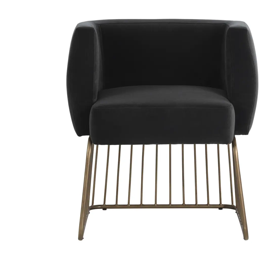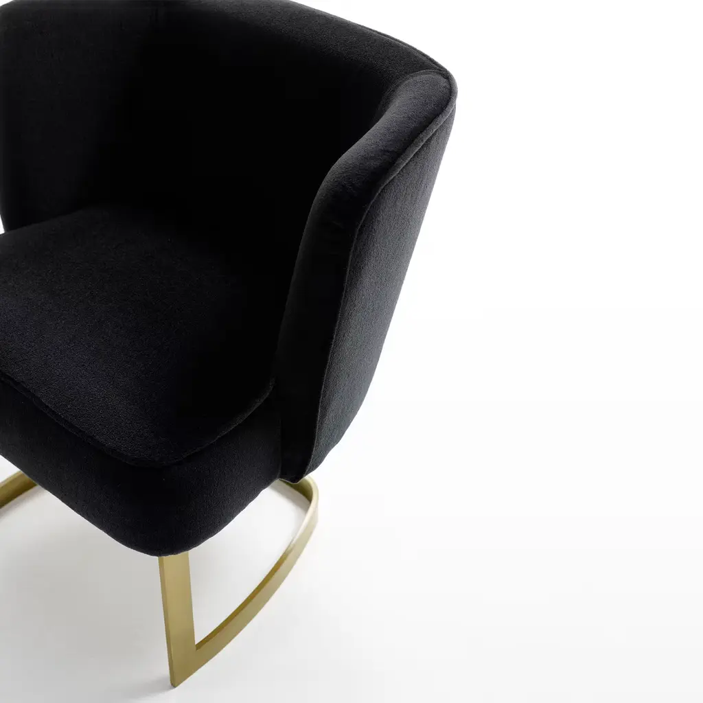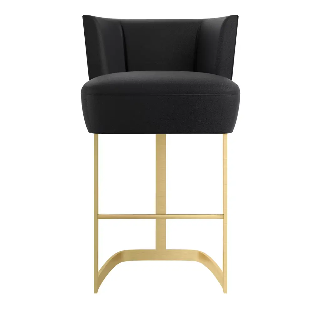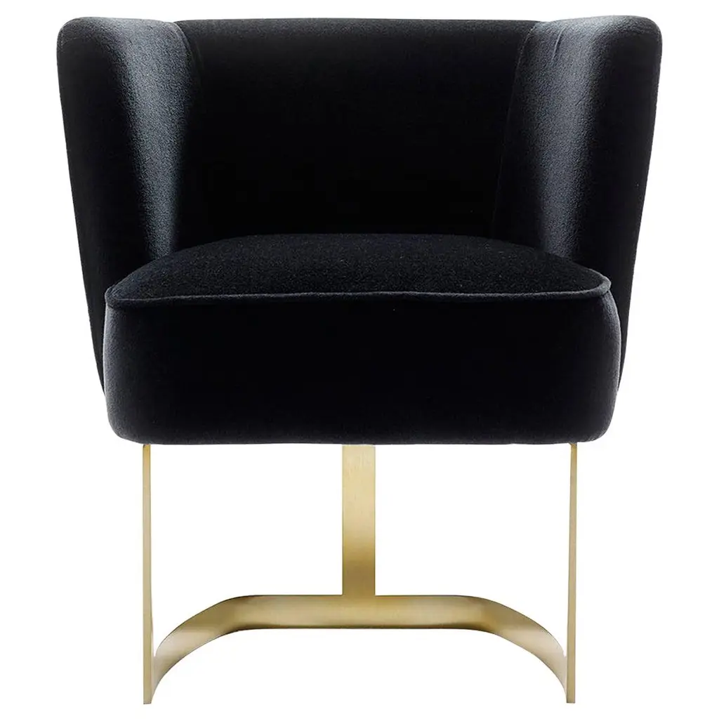 This luxurious seat is mounted on a brass frame with a horseshoe design and features polyurethane padding upholstered with fine black velvet. Designed by Studio 63.