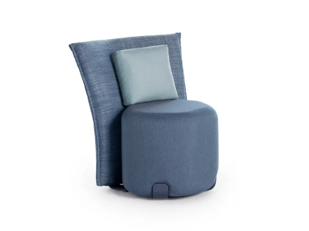 The comfort of an embrace: the K-WAITING upholstered collection by Rodolfo Dordoni plays with the contrast between the formal simplicity of rigorous volumes and soft, rounded lines. The division between habitat and contract solutions is increasingly blurred in this collection too. The keyword is versatility. The wide range of delightful upholstery includes warm velvety fabrics, bouclé and other fabrics that, though plainer, always stand out for their striking weave. All fabrics are certified for contract use.