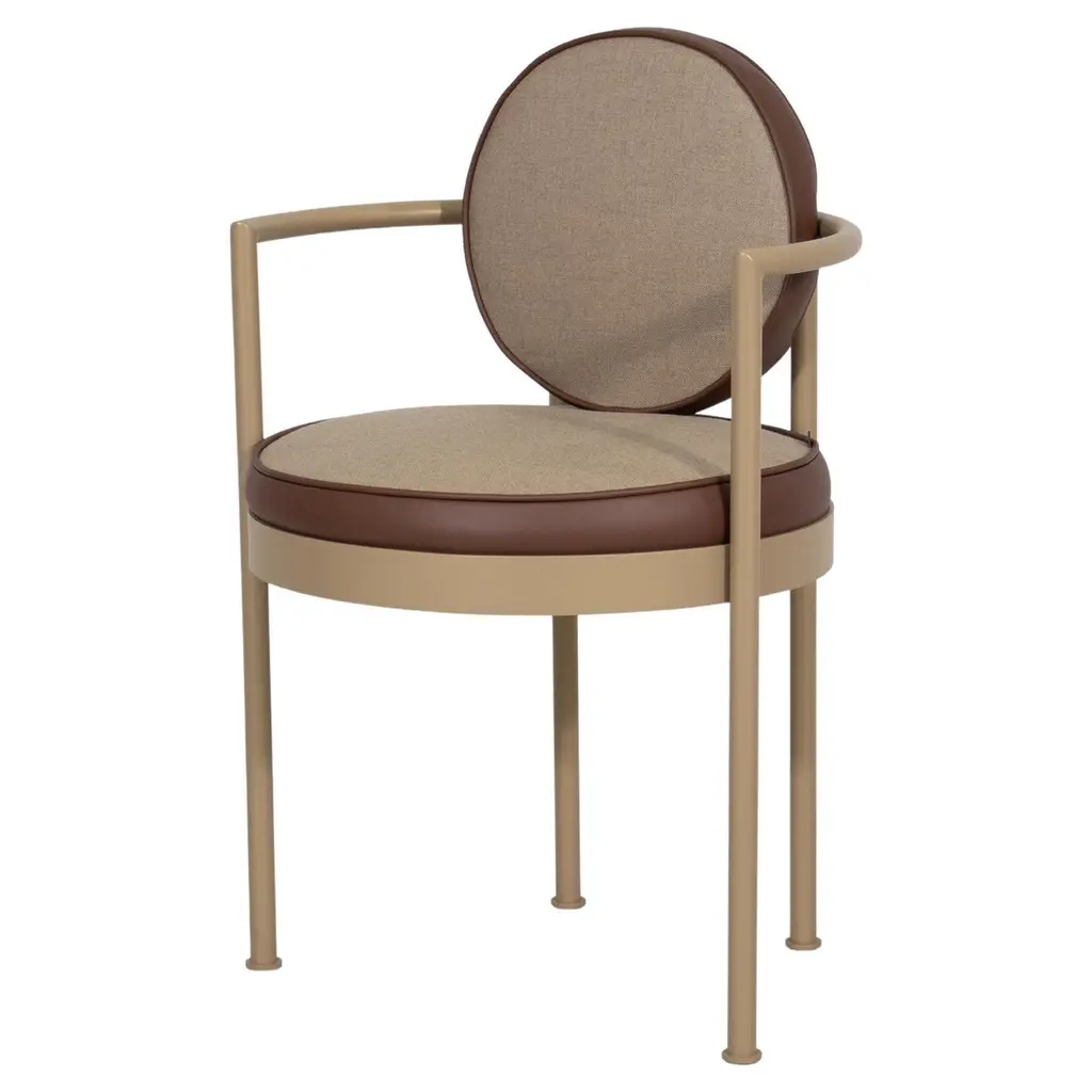 This three-legged armchair with a comfortable backrest is an invitation to relax, to enjoy the minutes slowly. The elliptical section of the leg emphasizes its elegant and solid supporting element and the padded seat, simple and closed, suggests possible variations of shapes, dimensions and materials in relation to use and comfort. Finally, the back formally released from the seat, allows you to free its nature of element strongly characterizing the seat: it can then be dilated or enveloping, high or low, rigid or soft, exaggerated or contained, allowing even in this case the freest combination of variations.Additional Information:Material: Brass and grey fabricFinish: Brown burnished brassDimensions: W 64 x D 52 x H 66 cmAvailable in other upholstery options: Natural leather, velvet, nappa leather, nabuck leatherAvailable in other finish options: Polished brass, satin brass, light burnished brass, dark burnished brass, black gold