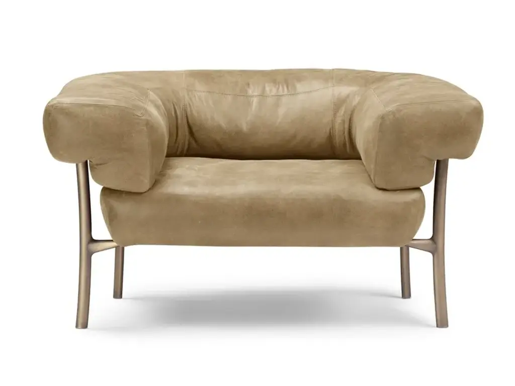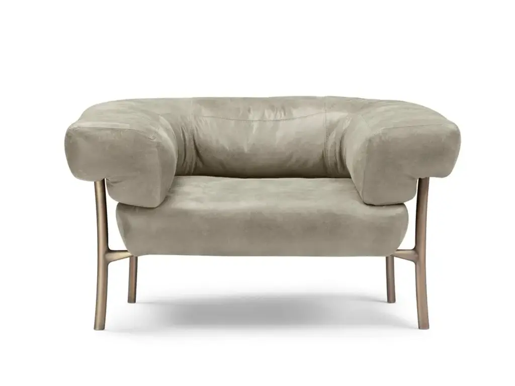 In the Katana armchair, Paolo Rizzatto, being the refined and expert designer he is, puts great care in the proportions of the structural elements of the product. In the elliptical leg, every millimeter has been designed and calibrated, as well as the relationship between seating and structure.Fittings and lines, grafts and joints, everything is designed for the best harmony. The dialogue between the parties, as in architecture, is for the Milanese architect a perfect orchestration.The ability and experience of Rizzatto in designing elegant, ironic and precious objects is perfectly summarized by the Katana sofa, which dialogs happily with the other collections of GHIDINI1961, creating endless relationships.Equilibrium and rigor are the two adjectives that best describe the sofa complete with armchair with generous measures.StructureBelted seat and multilayered, covered in polyurethane foam at different densities covered with quilted goose down in cotton lining. Backrest structure made of plywood covered with polyurethane rubber of different densities, all covered with a quilted goose down in cotton lining.CoversThe armchair covers are not removable.BaseThe armchair is based on the Katana leg. The Katana leg is made of Italian brass, die casted in-house at Ghidini1961. Polished manually, and lacquered with transparent finish to guarantee a longlasting durability.The series of seatings "Katana" identify and combine in a balanced synthesis the three elements that characterize seats (the legs, the seat, the backrest), but at the same time makes them understandable one separated from the other, enhancing in that way the different specific characteristics and mutual relations.