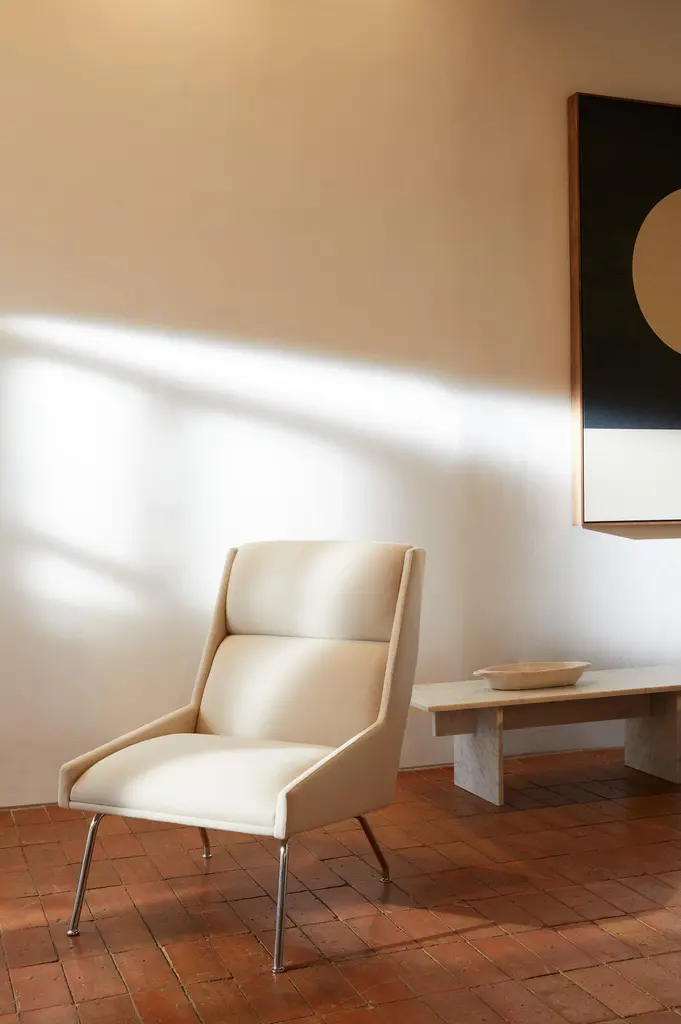 The Kent armchair is a testament to the artistry of form and fabrication. It embodies an elegant silhouette, drawing inspiration from the iconic elements of Italian 1950s design, including the angular lines of Gio Ponti's renowned 811 chair and the upholstery reminiscent of the luxurious Mercedes Benz 300.All our armchairs are made with solid FSC European hardwood frames, which we guarantee for life.With sustainability in mind, we prioritize renewable materials like hessian, coconut fiber, and wool felt, ensuring both durability and eco-consciousness.Handmade by a small team in the UK
