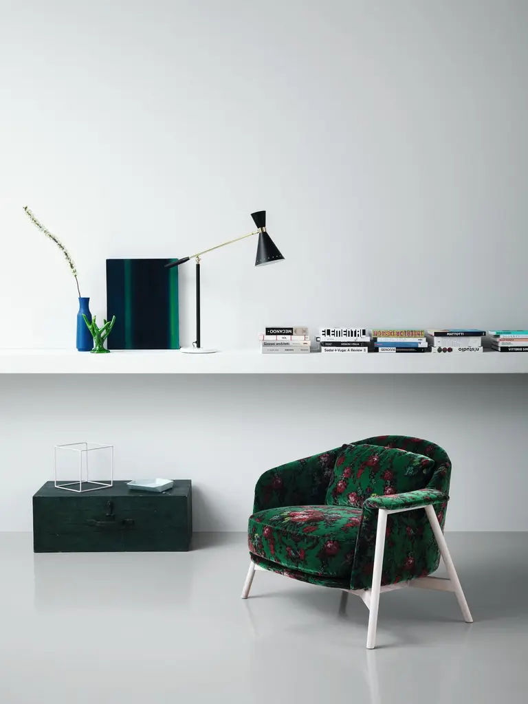 The Kepi armchair’s sober design and vaguely Nordic look are softened by rounded lines that add character and improve comfort. Its clean design and nonchalant elegance make it perfect for the home and a contract environments. The structure in bleached ash wood becomes its characteristic trait. The base is also available in varnished tubular stainless steel. The collection also includes a two-seat sofa and a pouf. Fully removable covers.Architect, designer, artist. Emilio Nanni has a degree in Architecture from the University of Florence. He has worked as a lecturer and researcher at the same faculty, and held lessons and workshops at several Italian university faculties and design schools. He is the founder of the Emilio Nanni arch+design ENa+d studio, which handles projects in the fields of architecture, design, interior design, art direction and design consultancy. As an architect he has designed and built residential buildings of various sizes in several Italian cities. He has worked as a designer for many Italian firms, including Billiani/Novecentoundici, Bross, Cabas, Calligaris, LaboratorioPesaro, Lamm, Mdf Italia, Guzzini, Roche Bobois, Saba, Tonelli, Tonon, Valadier Gioielli, Zanotta and Zeritalia. He has participated in many exhibitions and shows in the sector and his work has been featured in articles and critical essays in the leading Italian and international architectural periodicals, magazines, blogs and websites. He is also a painter, who has displayed his work in several solo exhibitions in galleries and museums in Italy and abroad, and his work is featured in various public and private international collections.Structure: In plywood with variable-density polyurethane foam (75IP and 25IM) covered with velfodera coupled with resin 150gr/sqm.Feet: Iron painted rod 22mm.Padding: The seat cushion is in variable-density polyurethane foam (40IM and 25IM) covered with fine velvet coupled with dacron 280gr/sqm. The lumbar cushion is made in white 100% cotton fabric and padded with washed and sterilized goose down.Additional information:Material: Iron, polyurethane foam, upholsteryLeg finish: Cobalt blueUpholstery: Vip, Diplo C1 - col.24Dimensions: 90 W x 78 D x 70 H cmSeat height: 41 cmAvailable in other upholstery options: C, E, lusso, extra, top, special, elite, royal, pelle club, pelle florida, pelle masterAvailable in other legs finish options: Bordeaux, grey, blanched ash, matt black""The Kepi armchair’s sober design and vaguely Nordic look are softened by rounded lines that add character and improve comfort. Its clean design and nonchalant elegance make it perfect for the home and a contract environments. The structure in bleached ash wood becomes its characteristic trait. The base is also available in varnished tubular stainless steel. The collection also includes a two-seat sofa and a pouf. Fully removable covers.Architect, designer, artist. Emilio Nanni has a degree in Architecture from the University of Florence. He has worked as a lecturer and researcher at the same faculty, and held lessons and workshops at several Italian university faculties and design schools. He is the founder of the Emilio Nanni arch+design ENa+d studio, which handles projects in the fields of architecture, design, interior design, art direction and design consultancy. As an architect he has designed and built residential buildings of various sizes in several Italian cities. He has worked as a designer for many Italian firms, including Billiani/Novecentoundici, Bross, Cabas, Calligaris, LaboratorioPesaro, Lamm, Mdf Italia, Guzzini, Roche Bobois, Saba, Tonelli, Tonon, Valadier Gioielli, Zanotta and Zeritalia. He has participated in many exhibitions and shows in the sector and his work has been featured in articles and critical essays in the leading Italian and international architectural periodicals, magazines, blogs and websites. He is also a painter, who has displayed his work in several solo exhibitions in galleries and museums in Italy and abroad, and his work is featured in various public and private international collections.Structure: In plywood with variable-density polyurethane foam (75IP and 25IM) covered with velfodera coupled with resin 150gr/sqm.Feet: Iron painted rod 22mm.Padding: The seat cushion is in variable-density polyurethane foam (40IM and 25IM) covered with fine velvet coupled with dacron 280gr/sqm. The lumbar cushion is made in white 100% cotton fabric and padded with washed and sterilized goose down.Additional information:Material: Iron, polyurethane foam, upholsteryLeg finish: Cobalt blueUpholstery: Vip, Diplo C1 - col.24Dimensions: 90 W x 78 D x 70 H cmSeat height: 41 cmAvailable in other upholstery options: C, E, lusso, extra, top, special, elite, royal, pelle club, pelle florida, pelle masterAvailable in other legs finish options: Bordeaux, grey, blanched ash, matt black