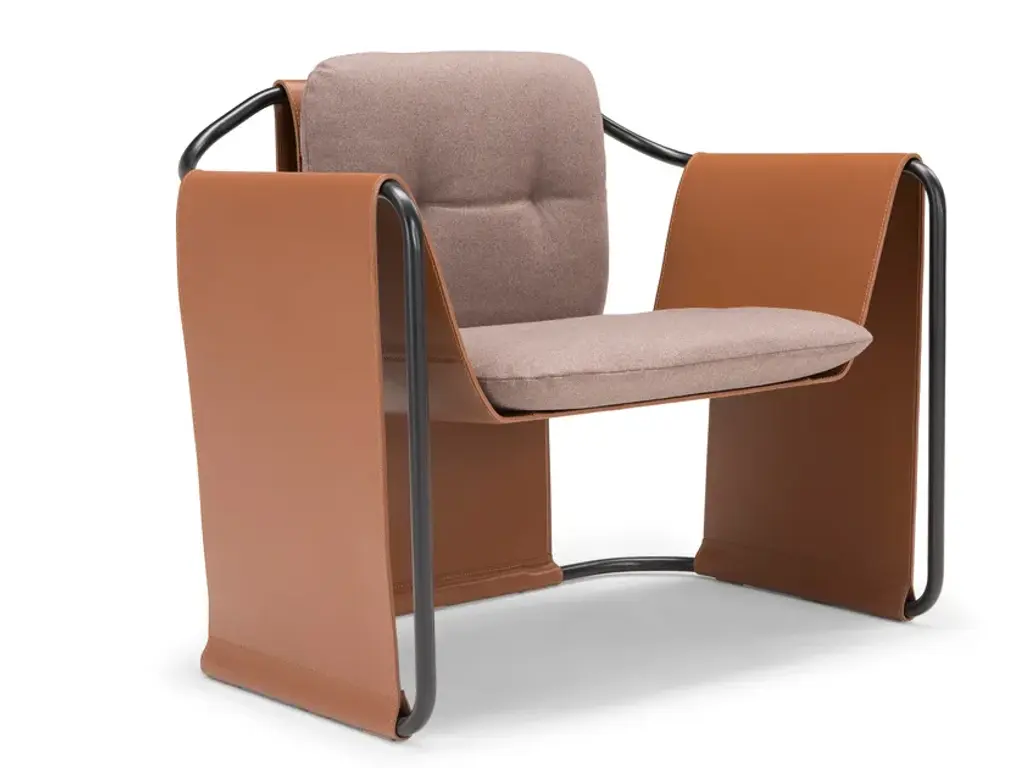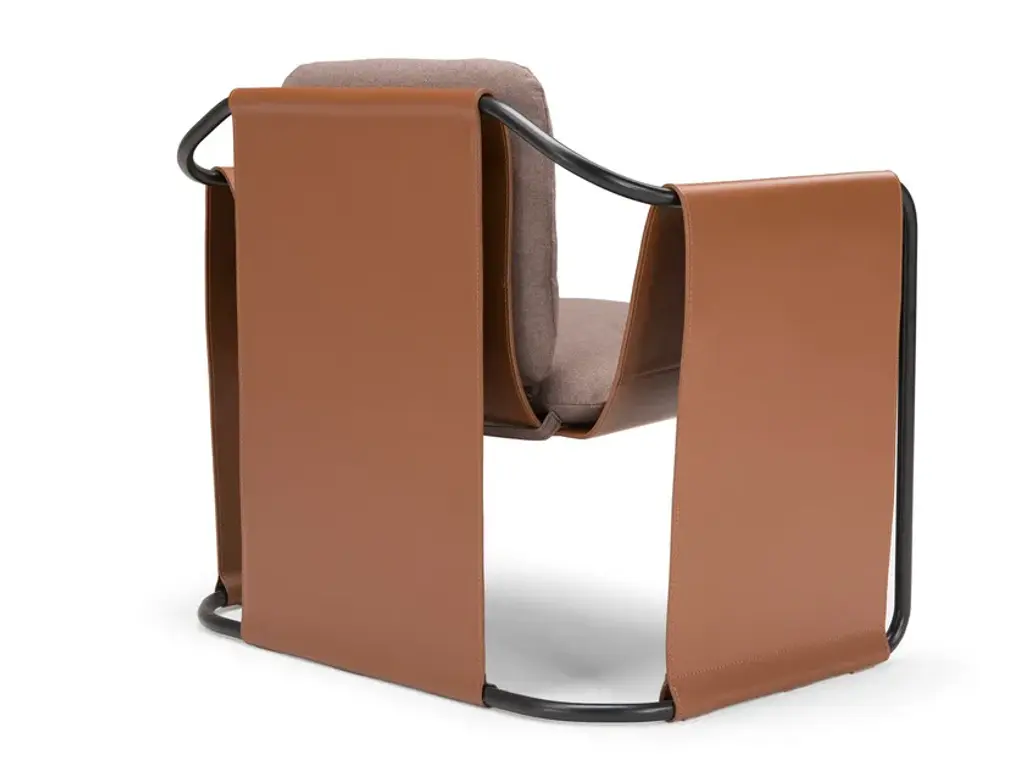 KIMONO is an elegant armchair, made of two elements: a tubular metal structure and the cuoio coverage. Essentiality of design: that’s where lies the original personalità of KIMONO, in the craftsmanship of the coverage the fascination of a hand-made product. The tubular metal gives shape to the structure, and the cuoio dresses it, hiding some parts, showing others: its defines the seat and backrest, leans on the arms and falls back, straight to the floor, as long kimono sleeves. Soft fabric cushions allow for the necessary comfort. The coverage can be customised, as a dress: a chance to play with material and colours. That’s the great versatility of KIMONO, a “bespoke” product, for different needs and destinations, from residential to contract. STRUCTURE: metal and cuoio SEAT + BACK: polyurethane foam, density 30 kg/m³. REMOVABLE PARTS: seat and back cushions.