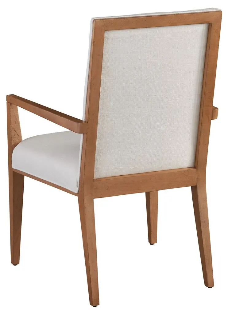 Gracefully simple or simply graceful: You decide. Designed by Barclay Butera with an open frame to complement a variety of room styles, this armchair pairs nutmeg-toned wood with white stain-resistant cotton-and-linen upholstery. The outside back is upholstered too to ensure the chair looks refined from every angle.