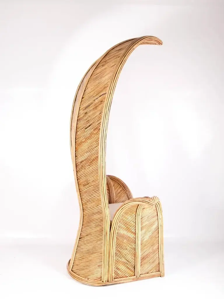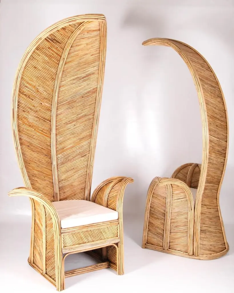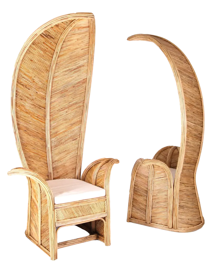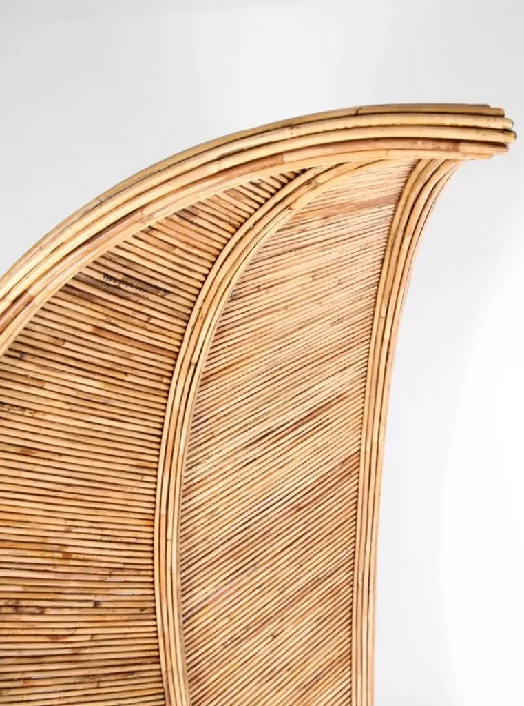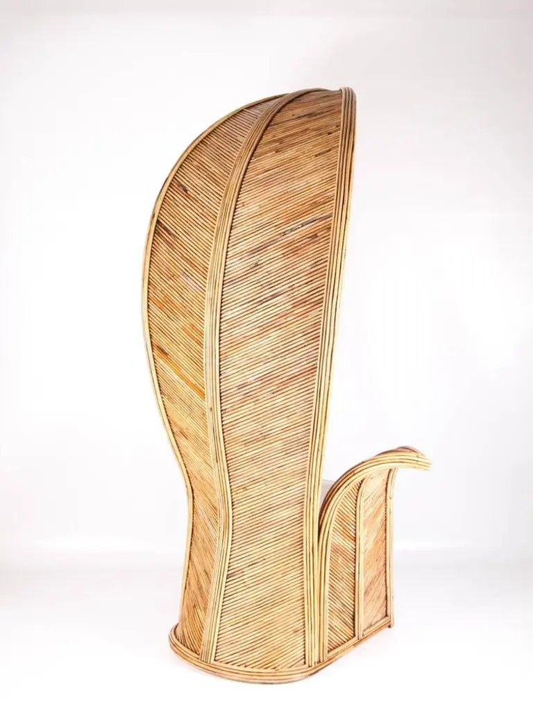 Amazing large rattan armchairs in shape of palms. Very unique and decorative, their quality is high as they are entirely hand made. Excellent condition.