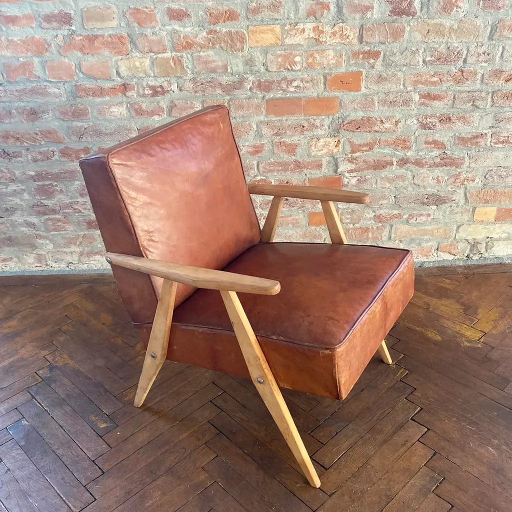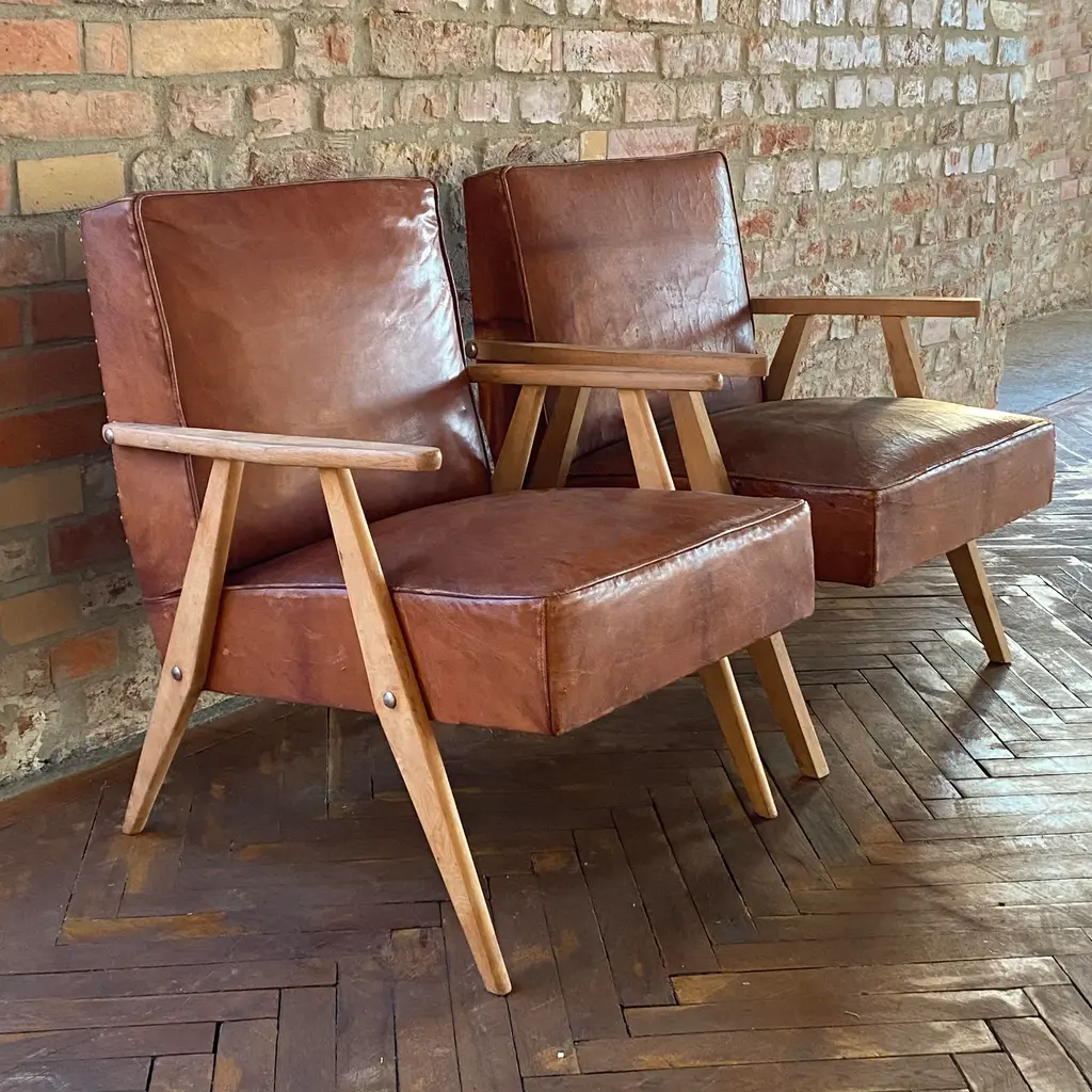 Leather Armchairs by Bernardo Bernardi for the Central Committee of Communist Croatia, 1960s, Set of 2, in None conditions. Designed 1960 to 1969