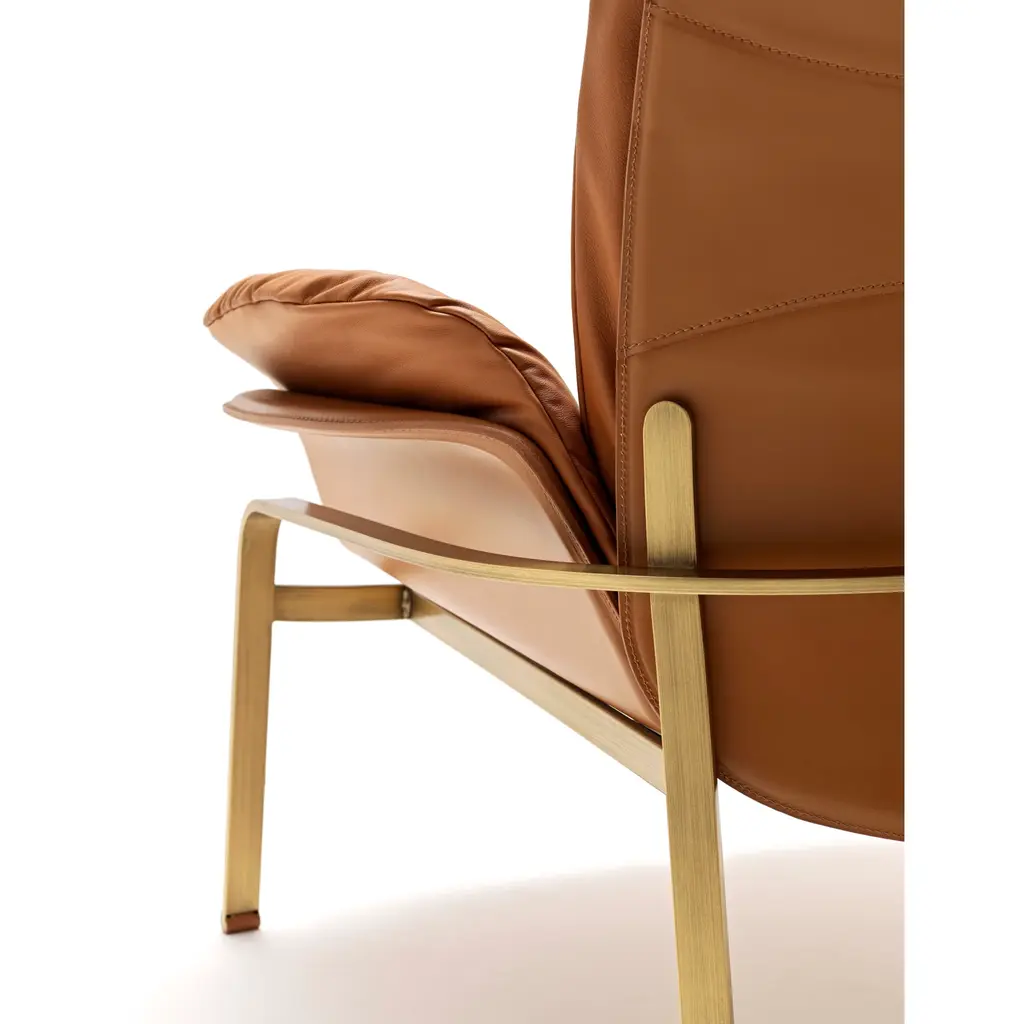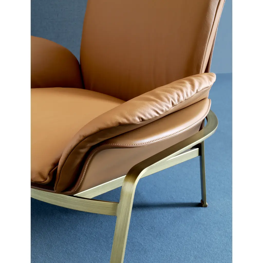 Electa Relax is the comfortable lounge armchair. The structure and backrest are made of steel in various finishes. The seat and armrests are made of beech plywood. The outer part of the backrest, as well as the armrests and seat, are entirely covered in full-grain Fasem leather. There are padded cushions on the backrest, seat, and armrests, all upholstered in high-quality Fasem leather. The padding is attached to the backrest and seat with a zipper. Notable is the refinement of the feet covered in full-grain Fasem leather. This is an element crafted in every detail, making it appreciable in residential and social environments.