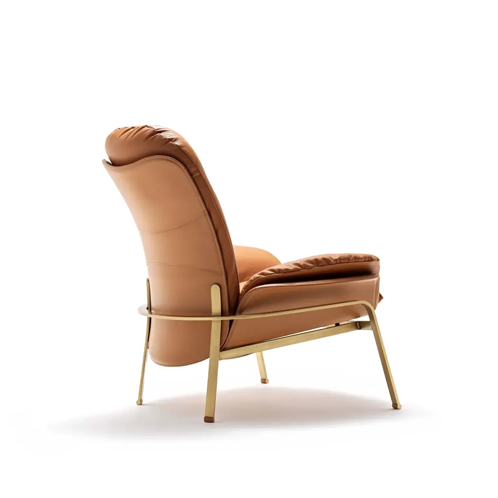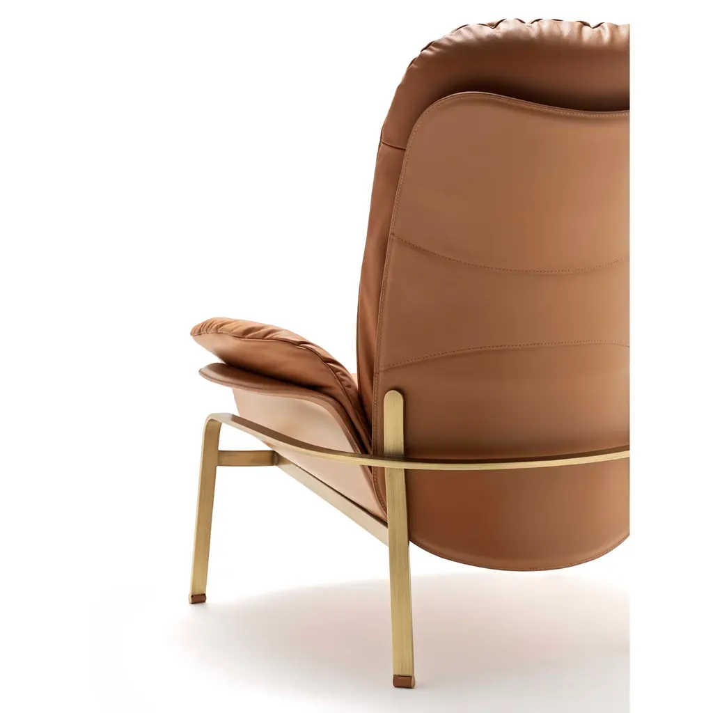 Electa Relax is the comfortable lounge armchair. The structure and backrest are made of steel in various finishes. The seat and armrests are made of beech plywood. The outer part of the backrest, as well as the armrests and seat, are entirely covered in full-grain Fasem leather. There are padded cushions on the backrest, seat, and armrests, all upholstered in high-quality Fasem leather. The padding is attached to the backrest and seat with a zipper. Notable is the refinement of the feet covered in full-grain Fasem leather. This is an element crafted in every detail, making it appreciable in residential and social environments.