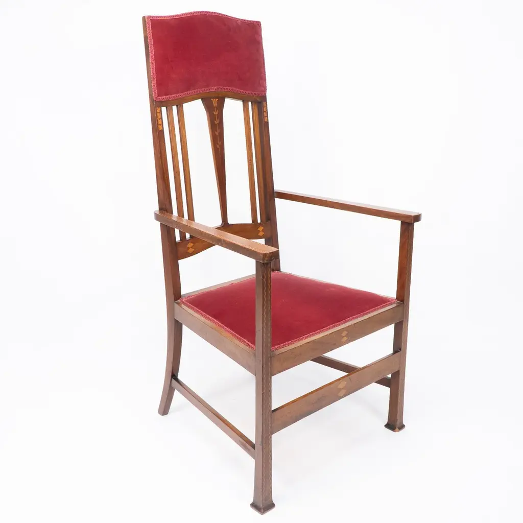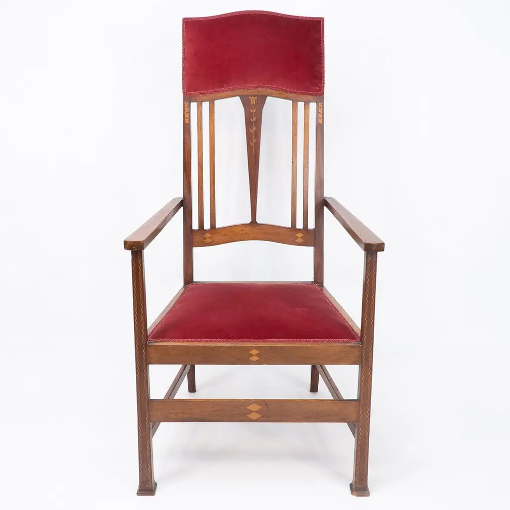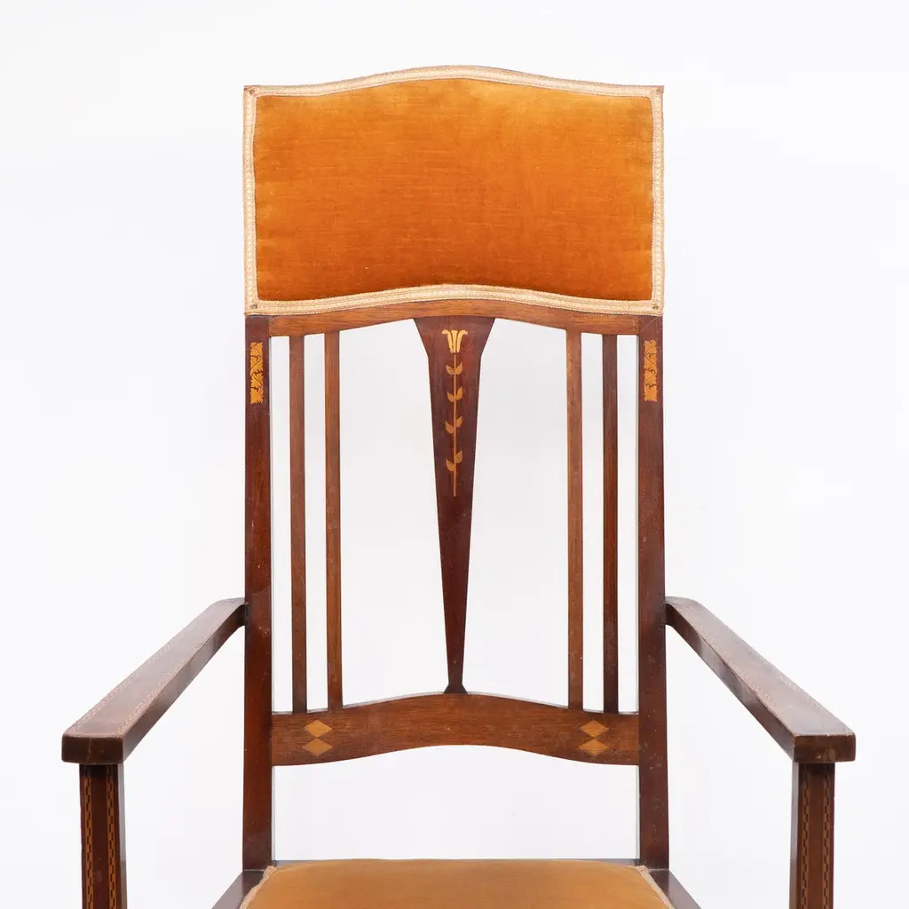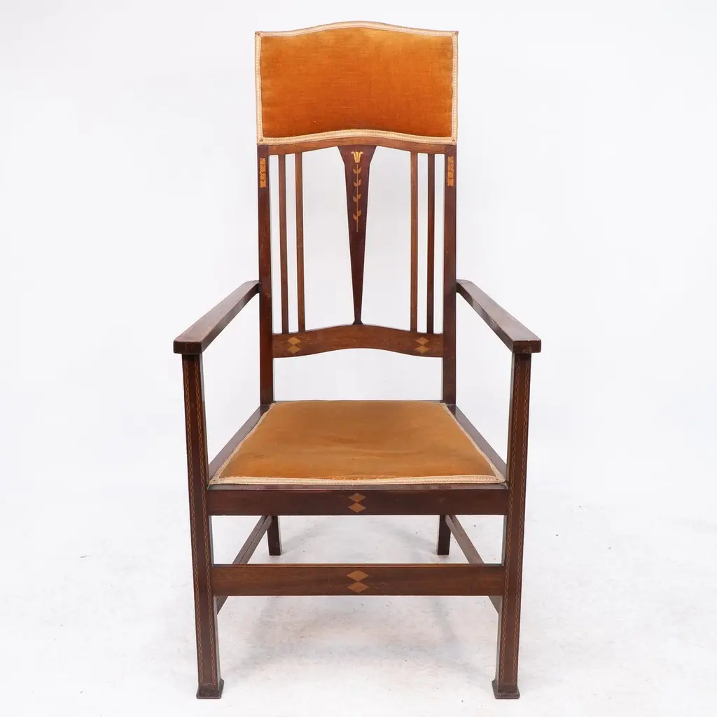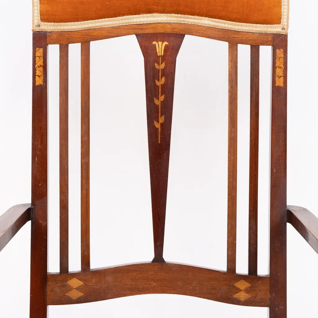 Liberty & Co. Two Arts & Crafts Mahogany Armchairs With Stylized Floral Inlays