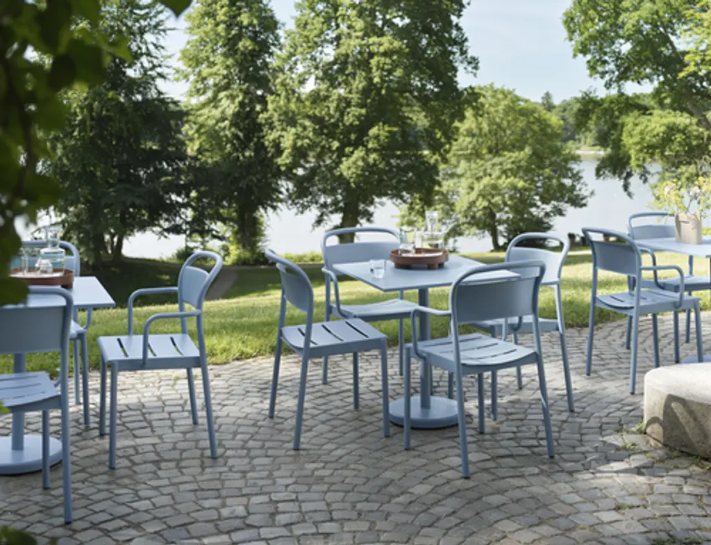 The Linear Steel Armchair is designed with clean, elegant lines and subtle details for a modern expression. Uniting invitingly organic shapes with extensive comfort and long-lasting qualities, the Linear Steel Armchair is an outdoor chair without any compromises. It is defined by its contrasts; the clean lines of its seat and front legs in combination with the ergonomic, smoothly curved backrest for an enveloping comfort. The Linear Steel Armchair is rationally designed in the way in which its seat is part of the apron, making for less material use in the production phase while making for a strong, durable design. Linear Steel Armchair stacks up to 5 chairs on the floor.