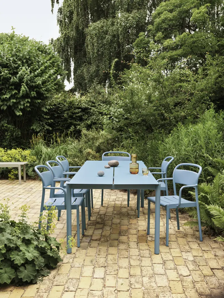 The Linear Steel Armchair is designed with clean, elegant lines and subtle details for a modern expression. Uniting invitingly organic shapes with extensive comfort and long-lasting qualities, the Linear Steel Armchair is an outdoor chair without any compromises. It is defined by its contrasts; the clean lines of its seat and front legs in combination with the ergonomic, smoothly curved backrest for an enveloping comfort. The Linear Steel Armchair is rationally designed in the way in which its seat is part of the apron, making for less material use in the production phase while making for a strong, durable design. Linear Steel Armchair stacks up to 5 chairs on the floor.