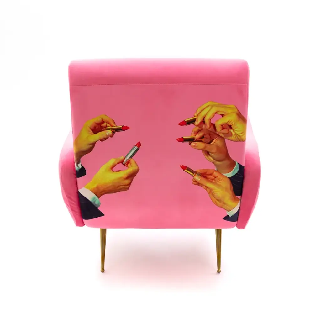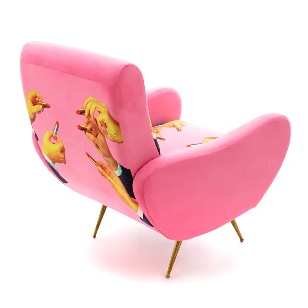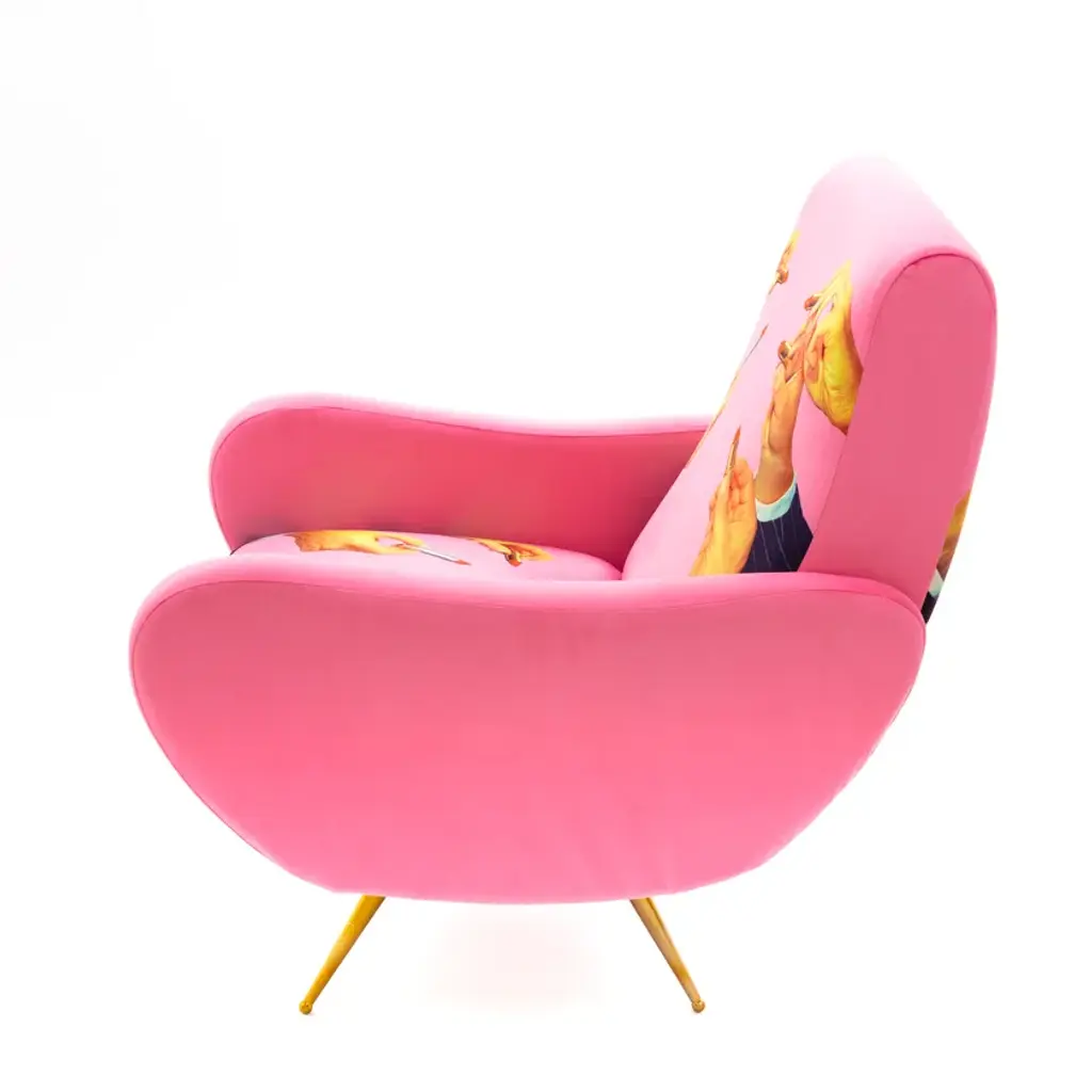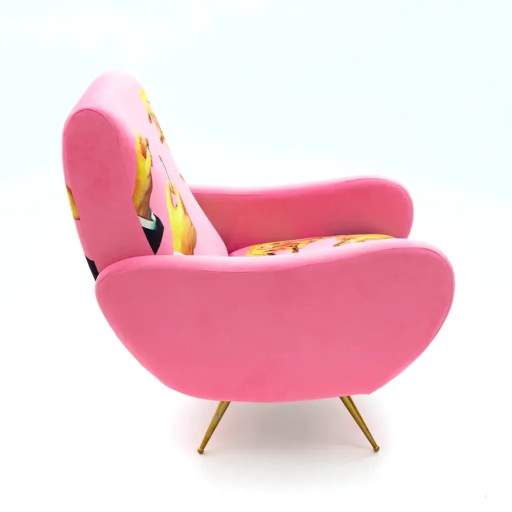 The traditional design of these 1950’s style seats are upholstered with unexpected surreal images. The images of the TOILETPAPER magazine invade furniture and become comfortable objects to relax in – not only for art lovers’ homes.ArmchairMaterial: Fabric in polyester, Structure in wood, polyurethane and metal