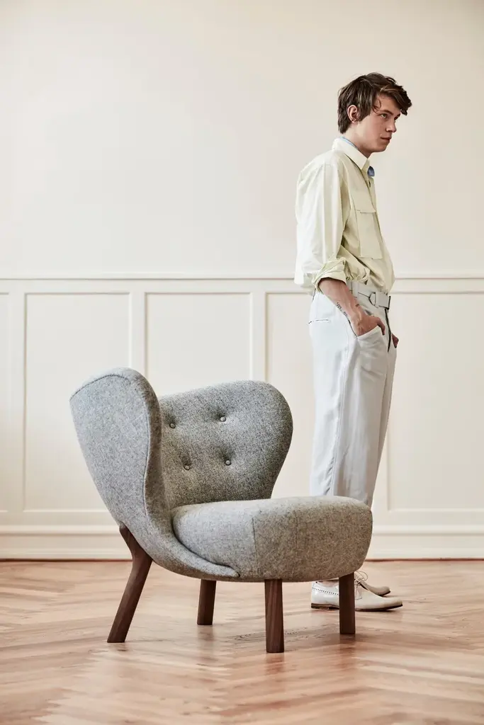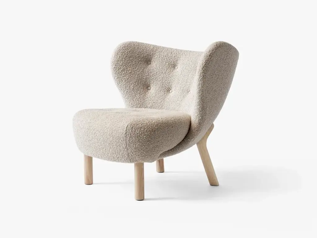 Initially introduced back in 1938, Little Petra won instant praise at the Copenhagen Cabinetmakers Guild Exhibition, subsequently winning awards at exhibits in New York and Berlin. It’s one of just a few designs by architect Viggo Boesen, who became associated with Denmark’s signature design aesthetic in the 1930s called funkis style. Little Petra is surprisingly petite, able to fit into all kinds of spaces, interiors and environments. Low to the ground, open and embracing, it embodies the essence of a lounge chair, allowing for all kinds of seating positions in any cosy setting imaginable.Production processThe frame is made from solid beech and plywood and subsequently covered in CMHR foam and polyester wadding. The solid wood legs are turned and CNC milledEnvironmentIndoorMaterialWood, CMHR foam, polyester wadding, fabric upholsteryColoursWhite Oiled OakOiled WalnutGlidersThe legs are fitted with felt gliders as standardStrength, Durability and Safety TestingThe chair is tested for strength, durability and safety according to EN 16139 Level 2 – extreme contract use