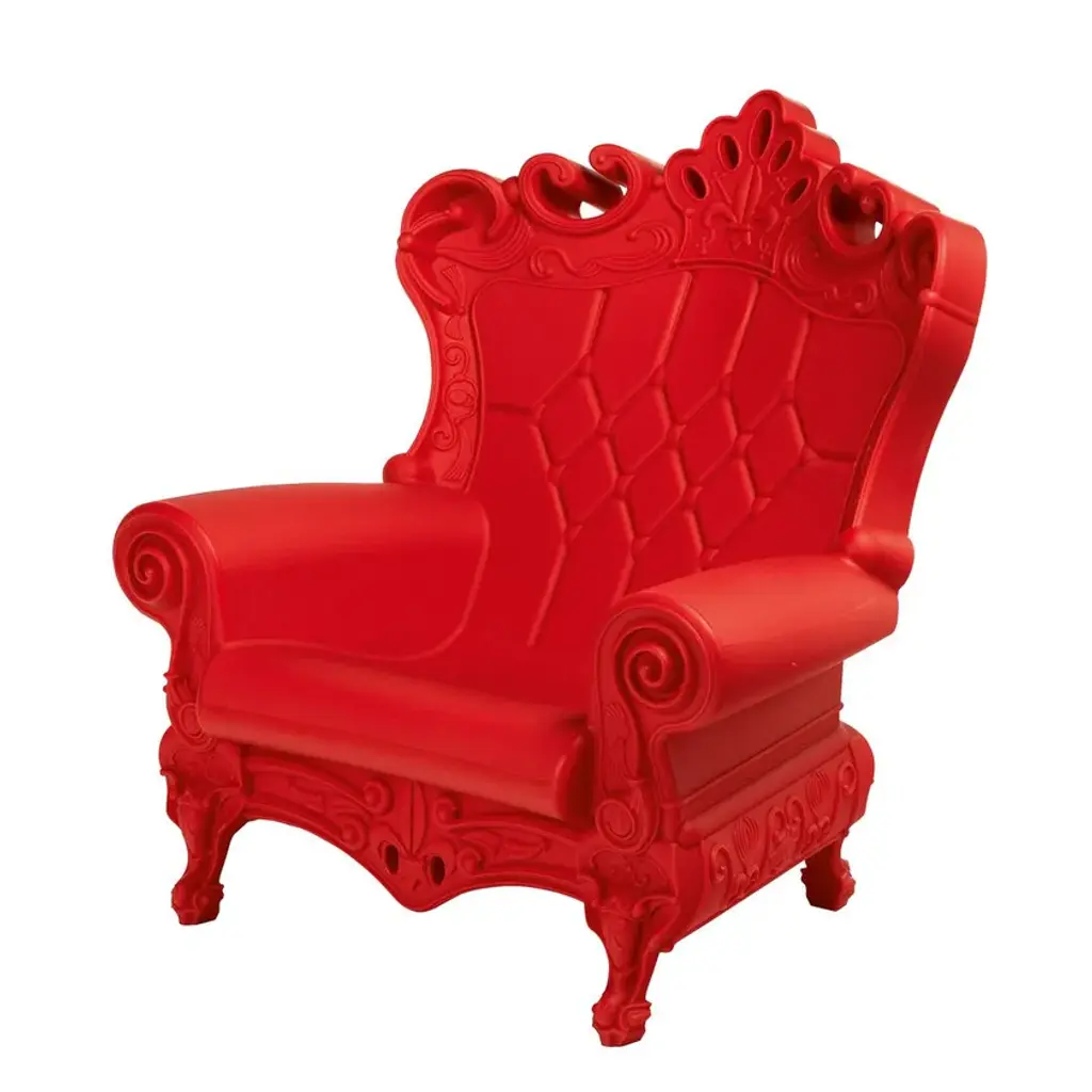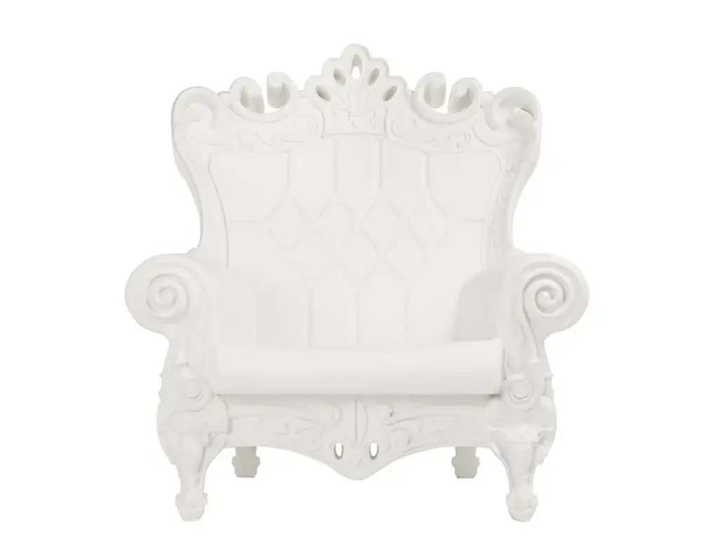 Little Queen of Love is the smaller model of the iconic Queen of Love armchair. The small armchair is ideal to kids and to small areas. Little Queen of Love keeps the same richness of details of the bigger one, but with small dimensions. The baroque style of its shapes and the pop style of polyethylene make Little Queen of Love a small star in every room it occupies, for both contract and homes. Resistant and colorful, Little Queen of Love is ideal to indoor and outdoor.Finishes:- Standard color- Lacquered- Matt lacquered