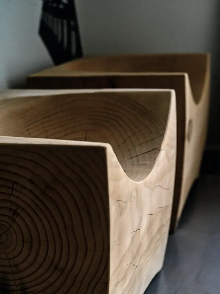 Log is an armchair made from a single block of scented cedar. Distinguished by its squared lines and ergonomic seat. Available as a single or double seater.AVAILABLE FINISHES:A7: cedarA9: cedar contract finish, vulcano cedar
