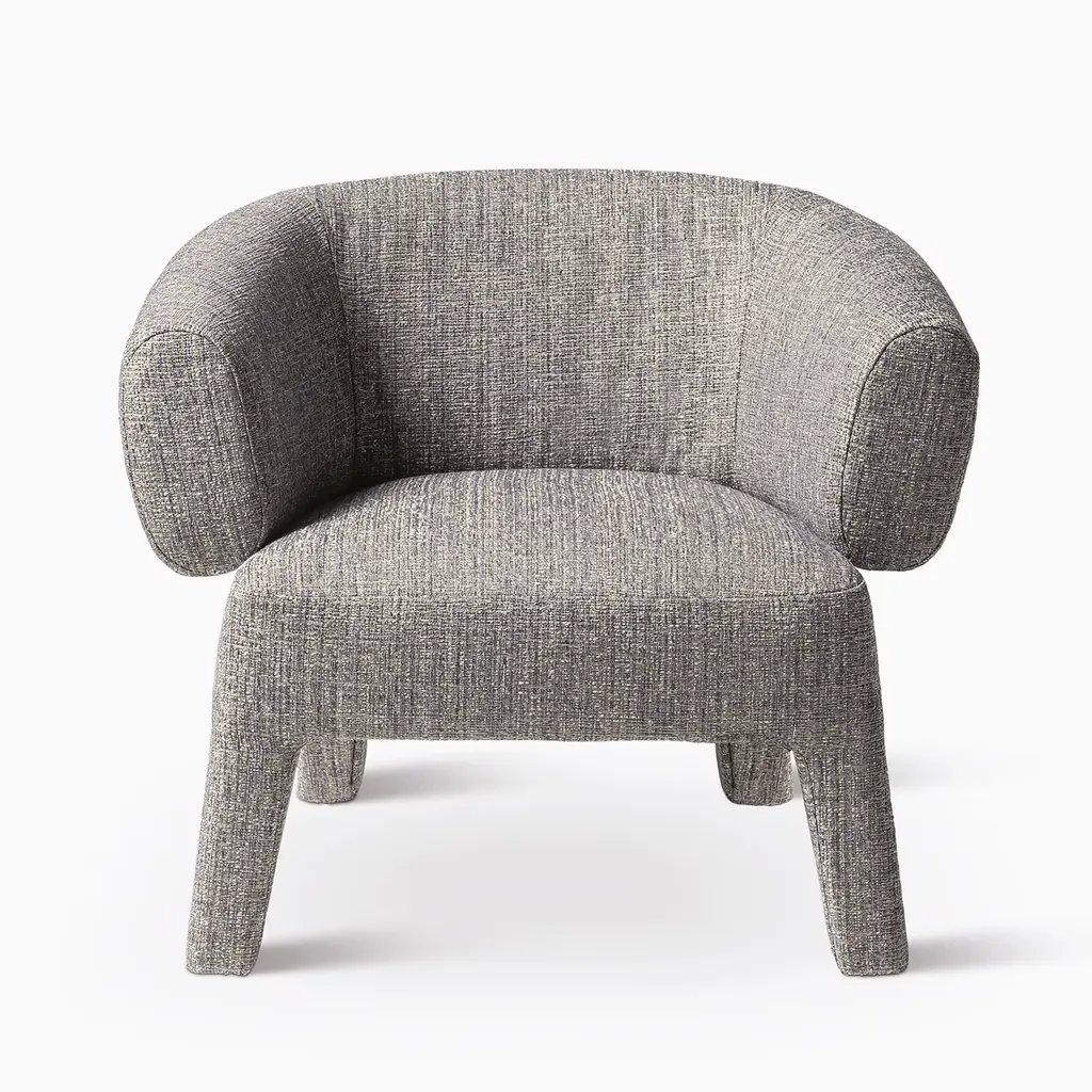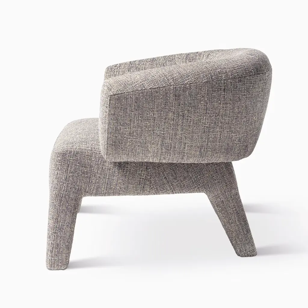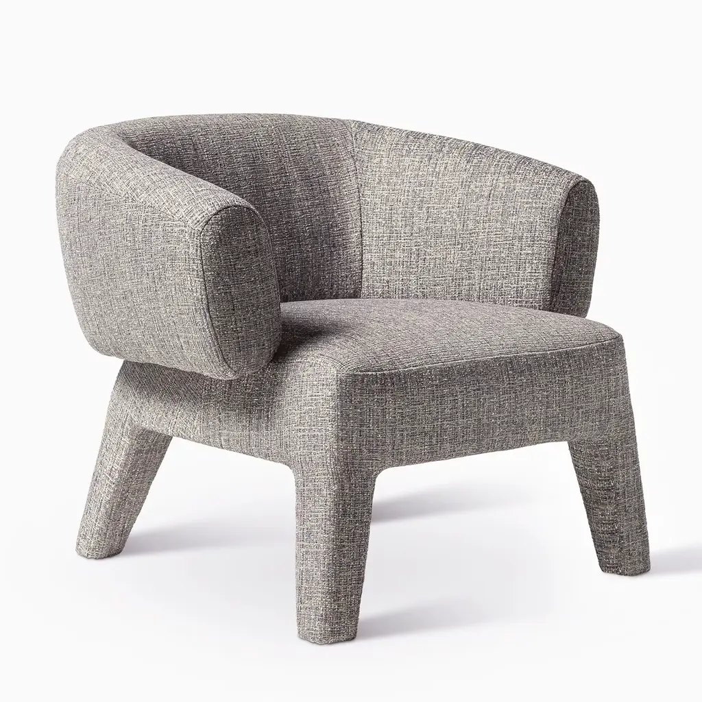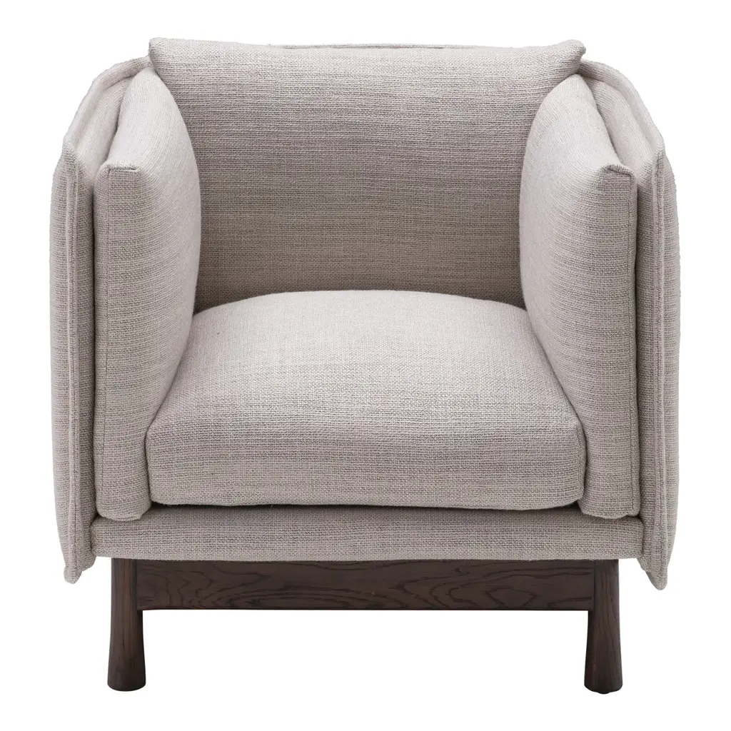 Thestylish armchair features a solid fir wood frame and poplar plywood for a durable yet elegant structure. The seat is padded with different densities of polyurethane foam for exceptional comfort. Upholstered in a fixed greige fabric, it offers a sophisticated, neutral tone that complements any modern interior. A perfect combination of comfort, craftsmanship, and timeless design for your living space.