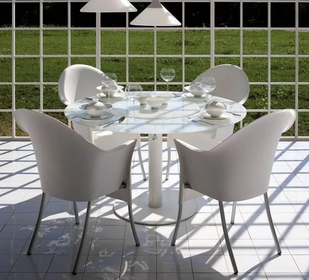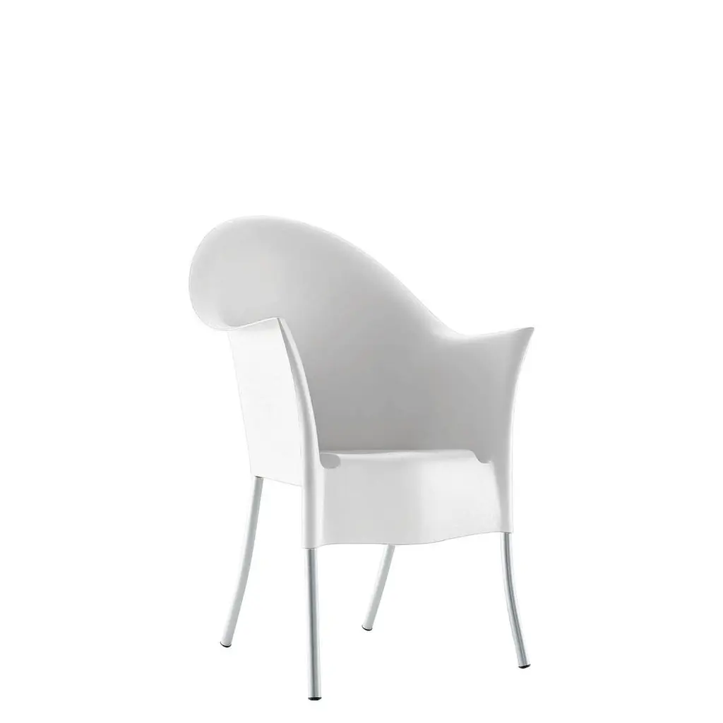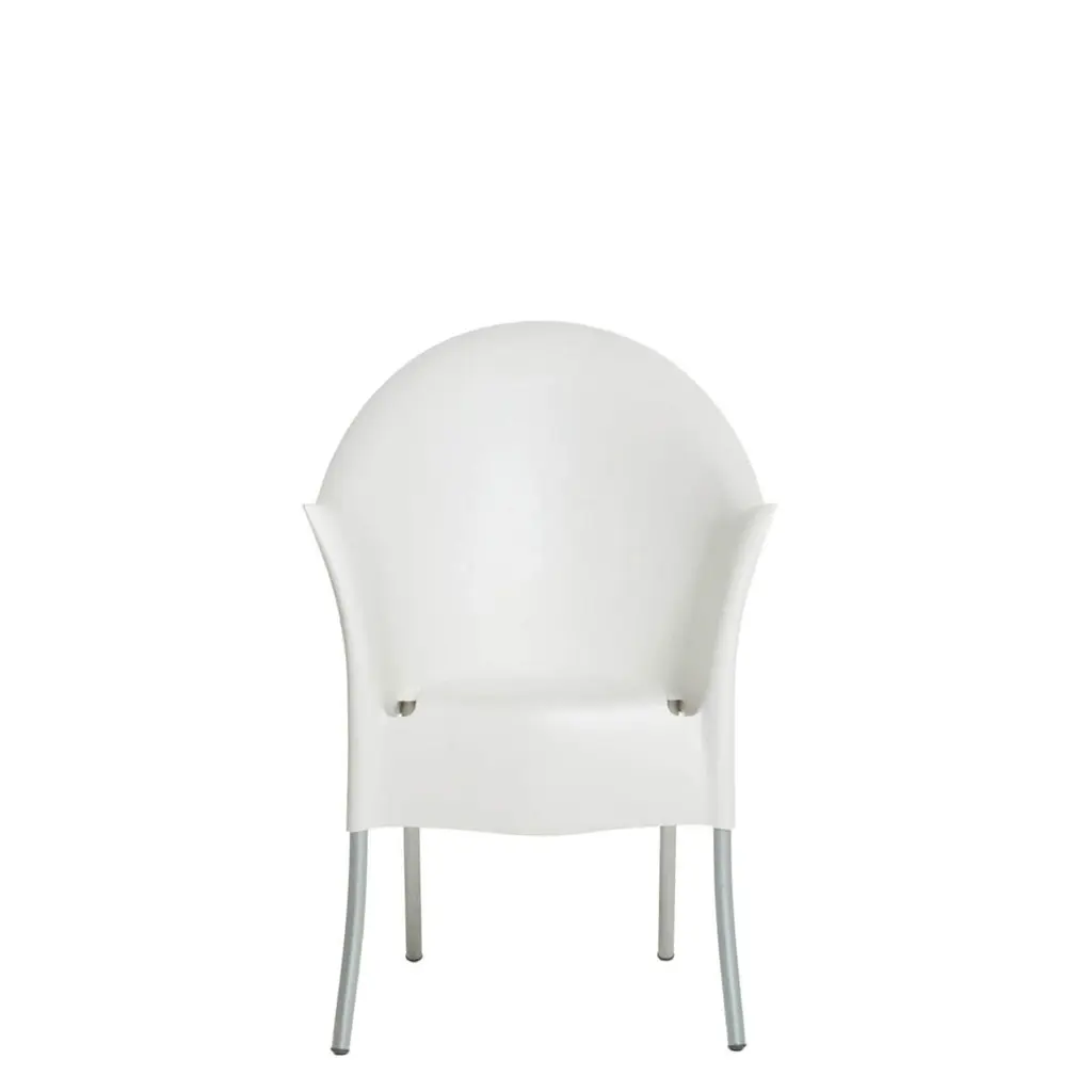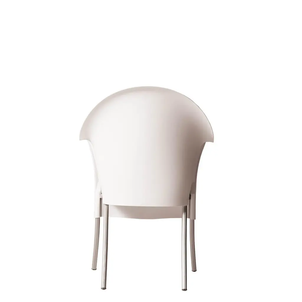 "Lord Yo" is an iconic armchair, designed by Philippe Starck and manufactured by Driade, featuring an aluminum structure and a polypropylene shell available in carnation, light gray, white and black colors. Smocking cotton or 100% preshrunk cotton loose covers available. Packing unit is 4 pieces of the same color. Indoor and outdoor use. White and light gray versions only are available in quick ship. DIMENSIONS:D. 25.9", W. 24.6", H. 37.2", Seat H. 17.7" At the beginning, Lord Yo was simply a polypropylene armchair with an aluminum structure, but now it’s an icon recognizable anywhere and recognized by anyone. Philippe Starck only could do this magic, designing such soft curves and a raised back, almost a throne, slightly bending legs, and then he finally thought about covering it, sometimes, with a white slipcover that shows what's under it, instead of hiding.PHILIPPE STARCK is an internationally acclaimed French creator, designer and architect. His profound comprehension of contemporary mutations, his determination to change the world, his anticipatory concern for environmental implications, his love of ideas, his desire to defend the intelligence of usefulness and the usefulness of intelligence have accompanied one iconic creation after the other.From everyday products such as furniture and lemon squeezers to revolutionary mega-yachts, individual windmills, electric bikes or hotels and restaurants that aspire to be wondrous, stimulating and intensely vibrant places. This untiring and rebellious citizen of the world, who considers sharing his ethical and subversive vision of a fairer planet as a duty, creates unconventional places and objects whose purpose is to be “good” before being beautiful.Philippe Starck and his wife, Jasmine, mostly live on an airplane or in “middles of nowhere”.