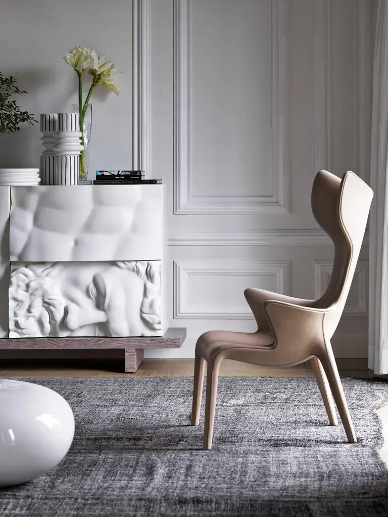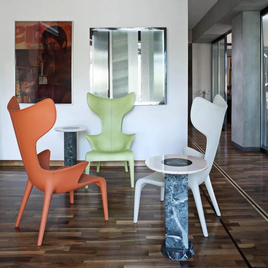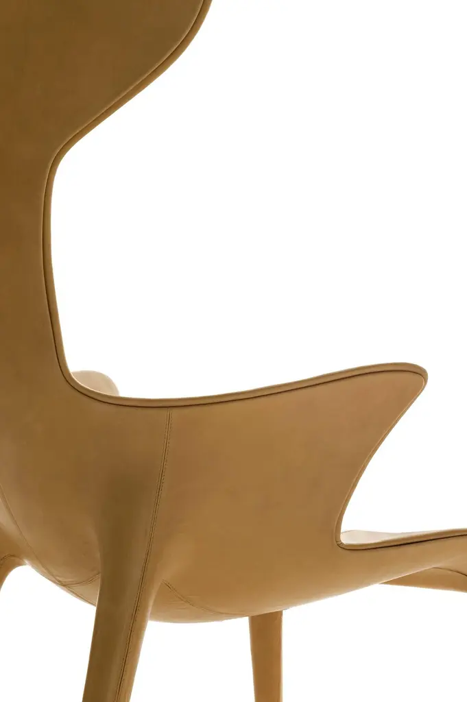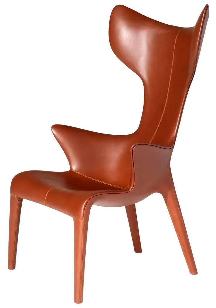 "Lou Read" is an iconic armchair, designed by Philippe Starck and Eugeni Quitllet and manufactured by Driade, with a polyurethane Baydur structure with internal metal reinforcement. Leather covers are available in a vast sampler of colors. Brown and black leather covered versions only are available in quick ship. Indoor use only.DIMENSIONS:D. 29.9", W. 27.5", H. 47.2", Seat H. 16.5" A strongly vivid armchair, with an organic outline, perhaps anthropomorphous, conceived with leather directly fixed on a fiberglass skeleton. The armchair is entirely covered in leather and hand-stitched. The unexpected comfort is given by its perfect ergonomics. Philippe Stark said about "Lou Read":"Just minimal body prolongation, an organic armchair supporting your spirit"PHILIPPE STARCK is an internationally acclaimed French creator, designer and architect. His profound comprehension of contemporary mutations, his determination to change the world, his anticipatory concern for environmental implications, his love of ideas, his desire to defend the intelligence of usefulness and the usefulness of intelligence have accompanied one iconic creation after the other.From everyday products such as furniture and lemon squeezers to revolutionary mega-yachts, individual windmills, electric bikes or hotels and restaurants that aspire to be wondrous, stimulating and intensely vibrant places. This untiring and rebellious citizen of the world, who considers sharing his ethical and subversive vision of a fairer planet as a duty, creates unconventional places and objects whose purpose is to be “good” before being beautiful.Philippe Starck and his wife, Jasmine, mostly live on an airplane or in “middles of nowhere”.
