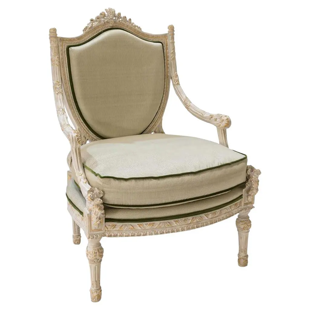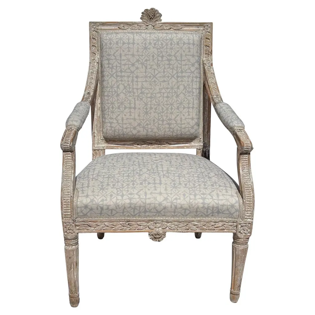 Louis Xvi-Style Beige & Gray Armchair