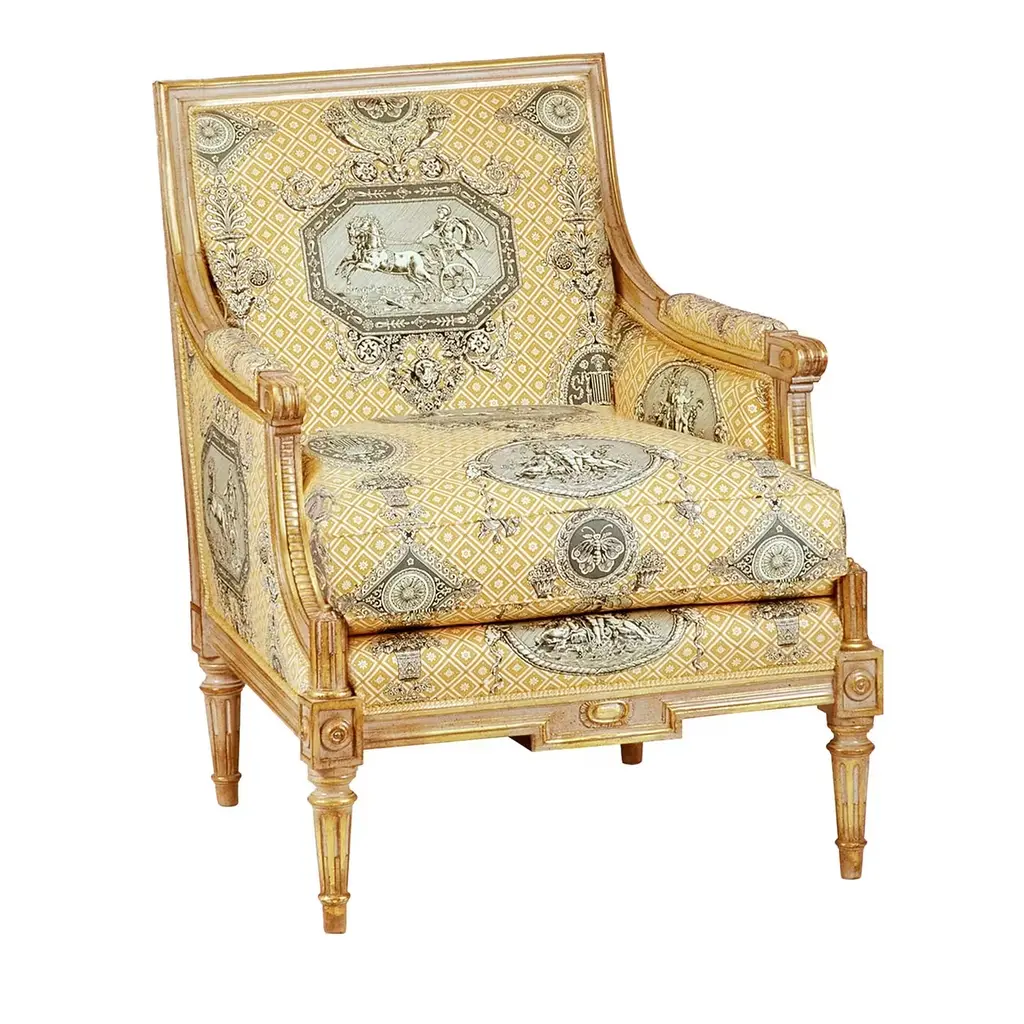 Louis Xvi-Style Ivory & Gold Bergère Armchair
