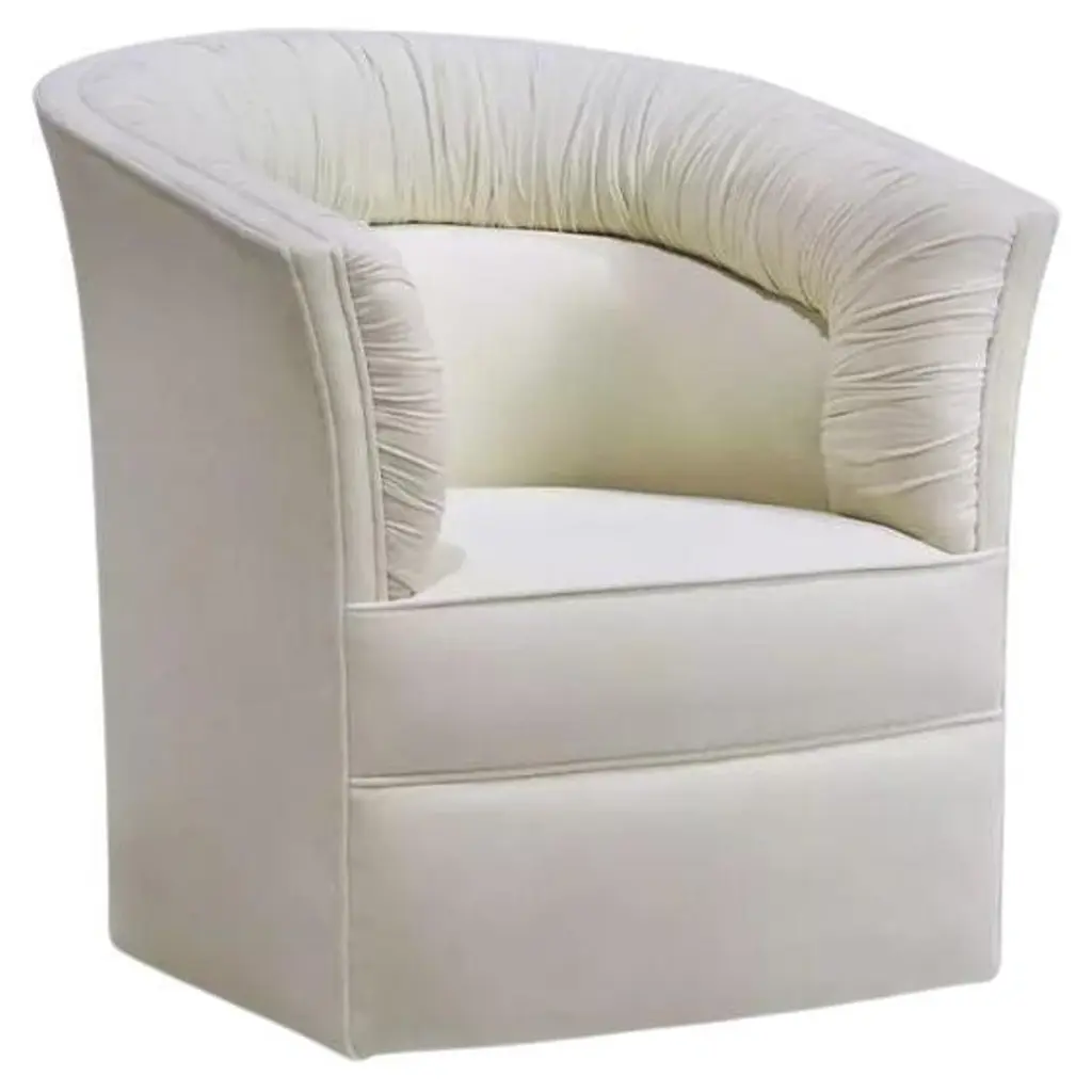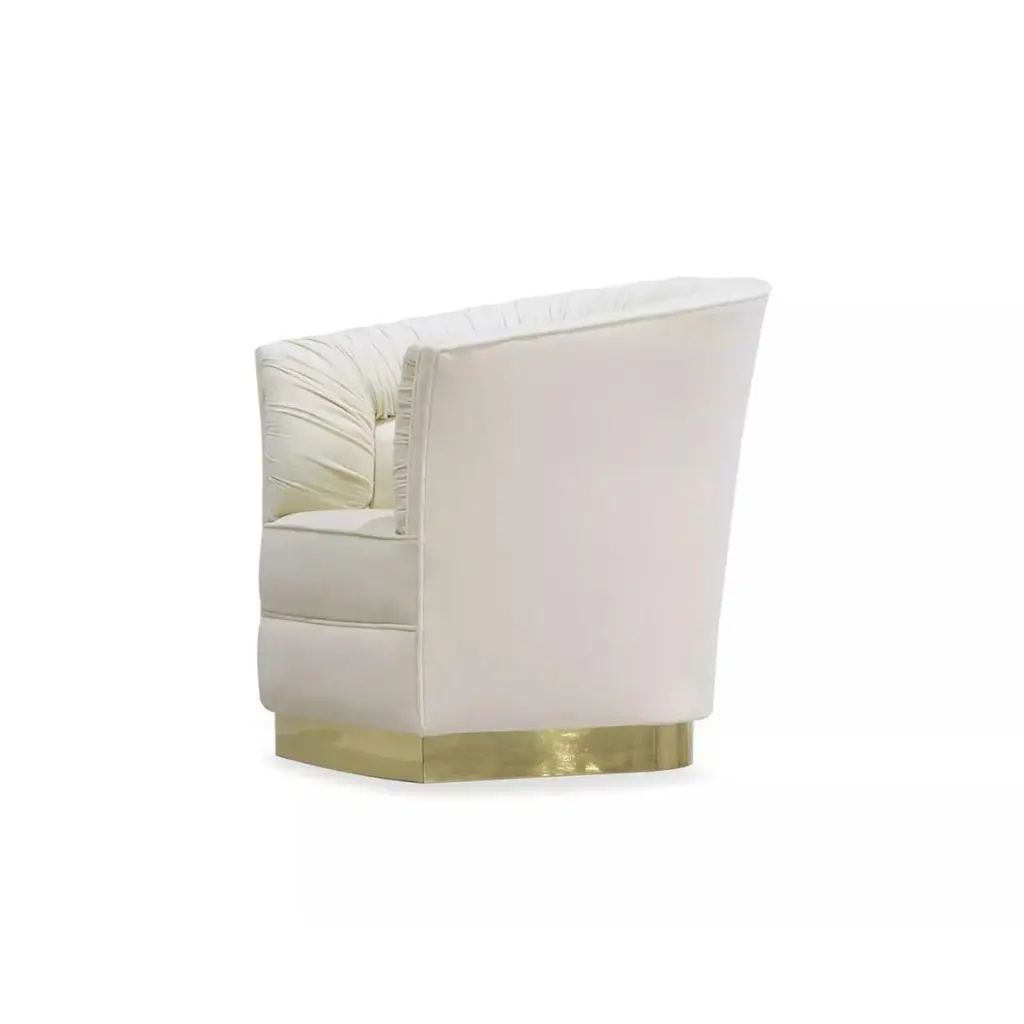 Lean back and be held by the soft fabric arms of the Lovely chair. Her curves softly unfold like a Lily in bloom contrasted by her trendy square base, wrapped with a posh metal band.As ShownUpholstery: Lux Velvet Ivory 0099 from the KOKET Textiles collectionBase: Polished Brass (High Gloss FInish)