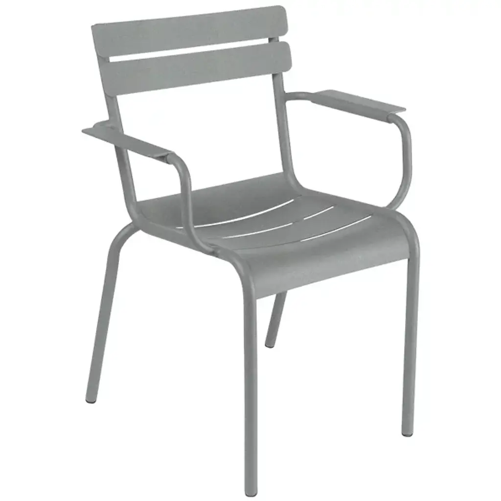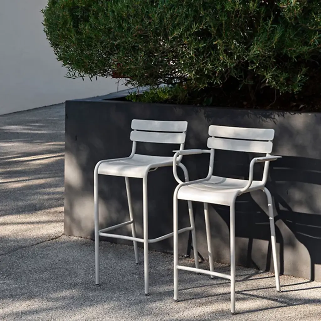 Enjoy a modern twist on a classic design. Designed as an ode to the legendary armchairs found in Jardin du Luxembourg, the Luxembourg High Armchair, Set of 2 by Fermob features clean lines and a bolstered height. Its tubular Aluminum frame supports 3 design elements that make this chair such a classic: curved slatted seat, curved slatted backrest, and slatted armrests. Made to reach countertops, this stackable high armchair is an optimal addition to bar-height tables.