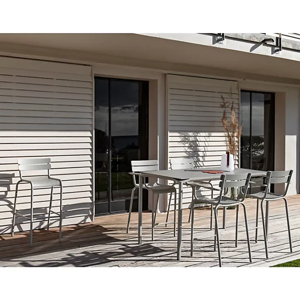 Enjoy a modern twist on a classic design. Designed as an ode to the legendary armchairs found in Jardin du Luxembourg, the Luxembourg High Armchair, Set of 2 by Fermob features clean lines and a bolstered height. Its tubular Aluminum frame supports 3 design elements that make this chair such a classic: curved slatted seat, curved slatted backrest, and slatted armrests. Made to reach countertops, this stackable high armchair is an optimal addition to bar-height tables.