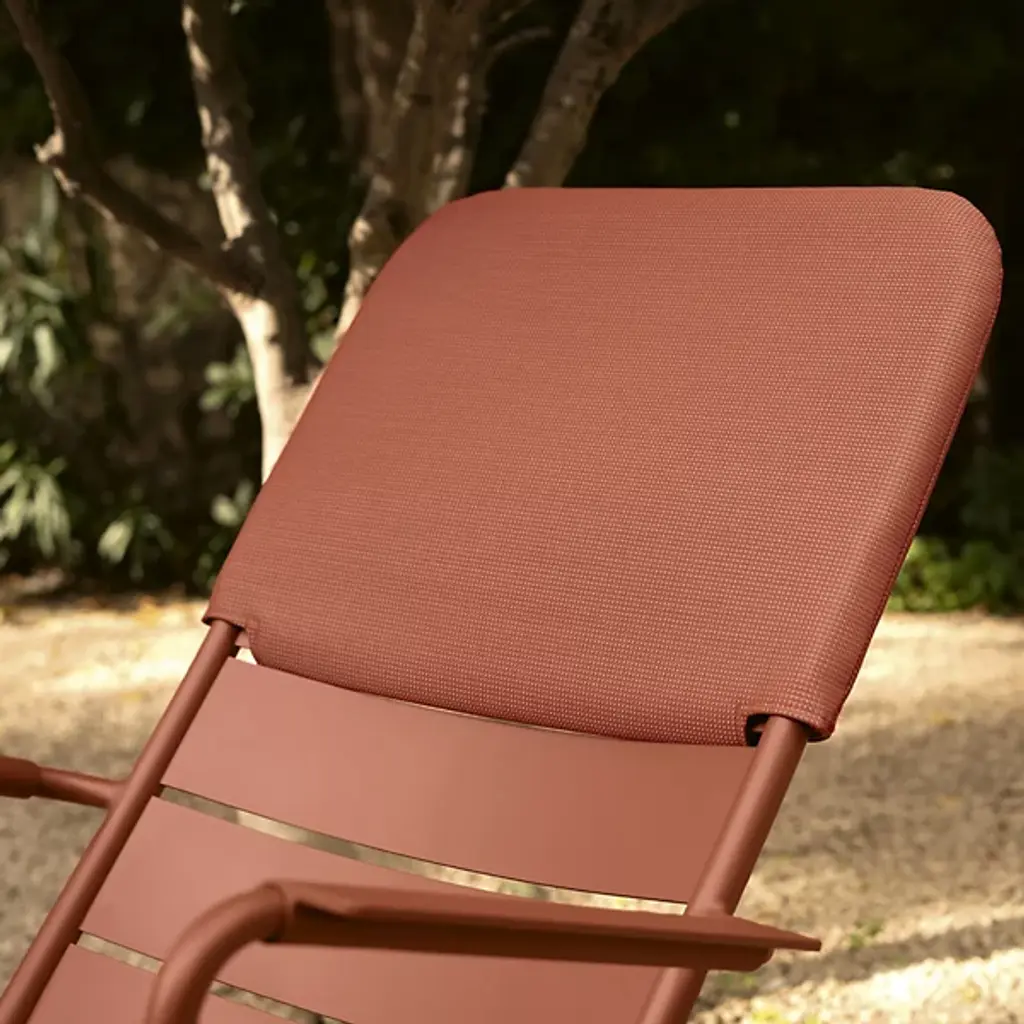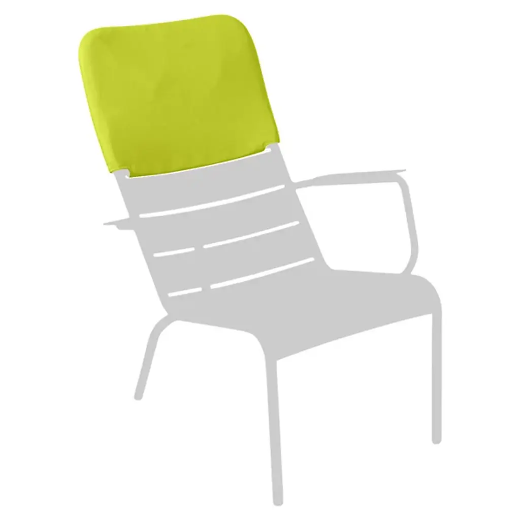 Add height, color and comfort to your Luxembourg Stacking Low Armchairs. The Fermob Luxembourg Low Armchair Headrest features Fermob's signature Outdoor Technical Fabric, made of polyester with a protective PVC coating. Underneath, it has a tubular aluminum frame that attaches securely to the top of the armchair.