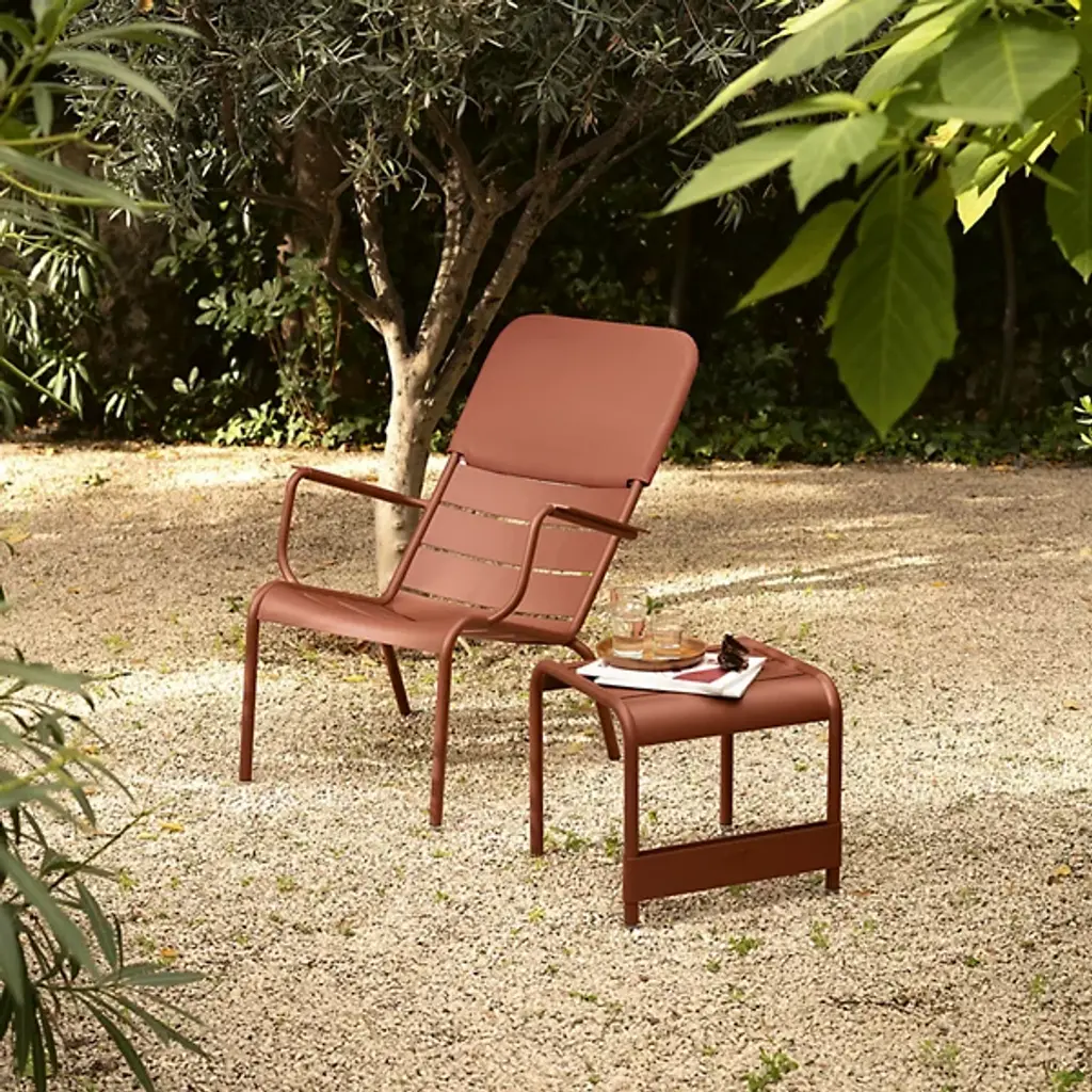 Add height, color and comfort to your Luxembourg Stacking Low Armchairs. The Fermob Luxembourg Low Armchair Headrest features Fermob's signature Outdoor Technical Fabric, made of polyester with a protective PVC coating. Underneath, it has a tubular aluminum frame that attaches securely to the top of the armchair.