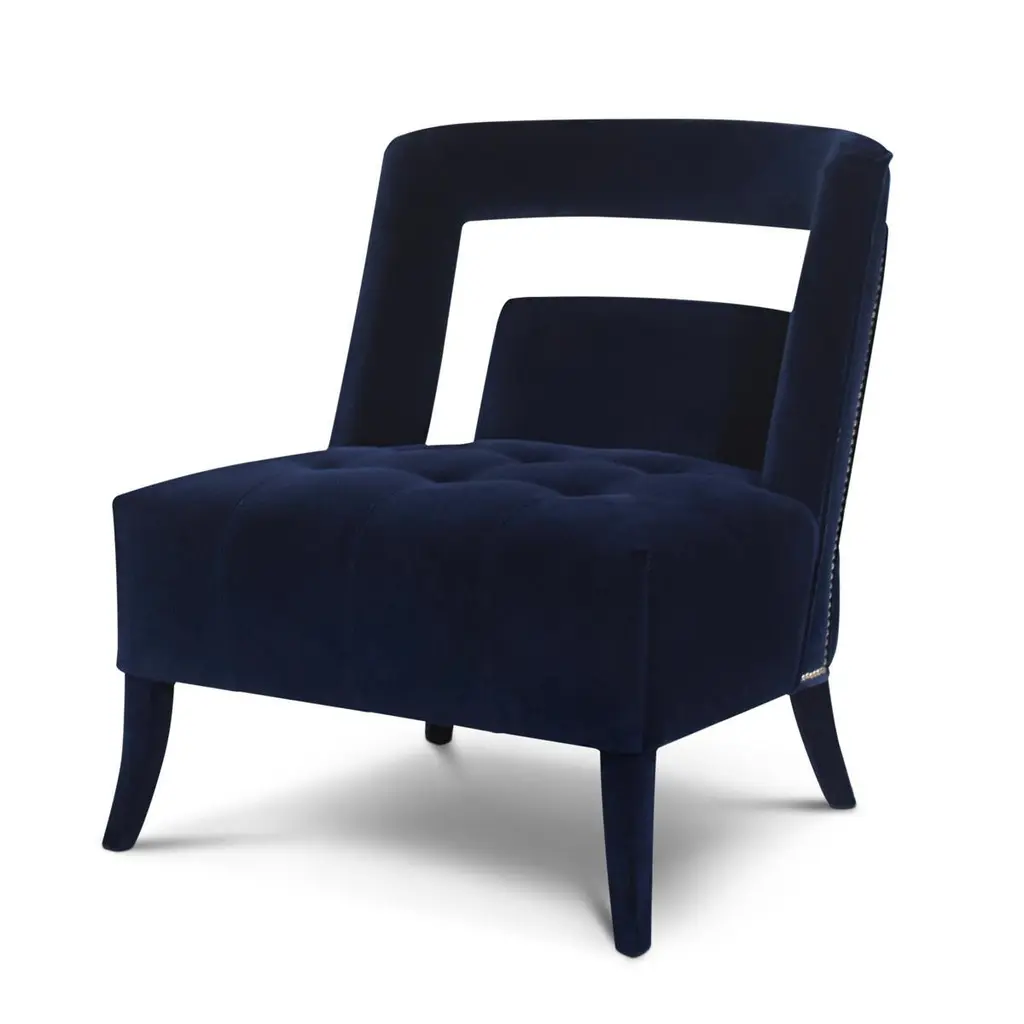 Mahal Armchair With Blue Velvet Fabric