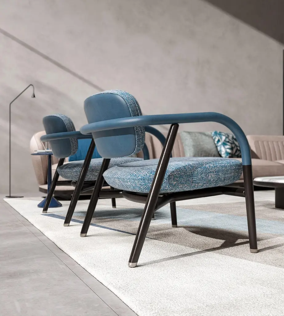 The Maiori occasional armchair is a new way of decorating an interior environment.Its smooth and tapering silhouette allows it to create harmony in a brand-new or existing ambience.The refined and sapient use of the leather and the fabric gives the piece a heterogeneous yet compact design which allows it to be displayed in any interior arrangement.