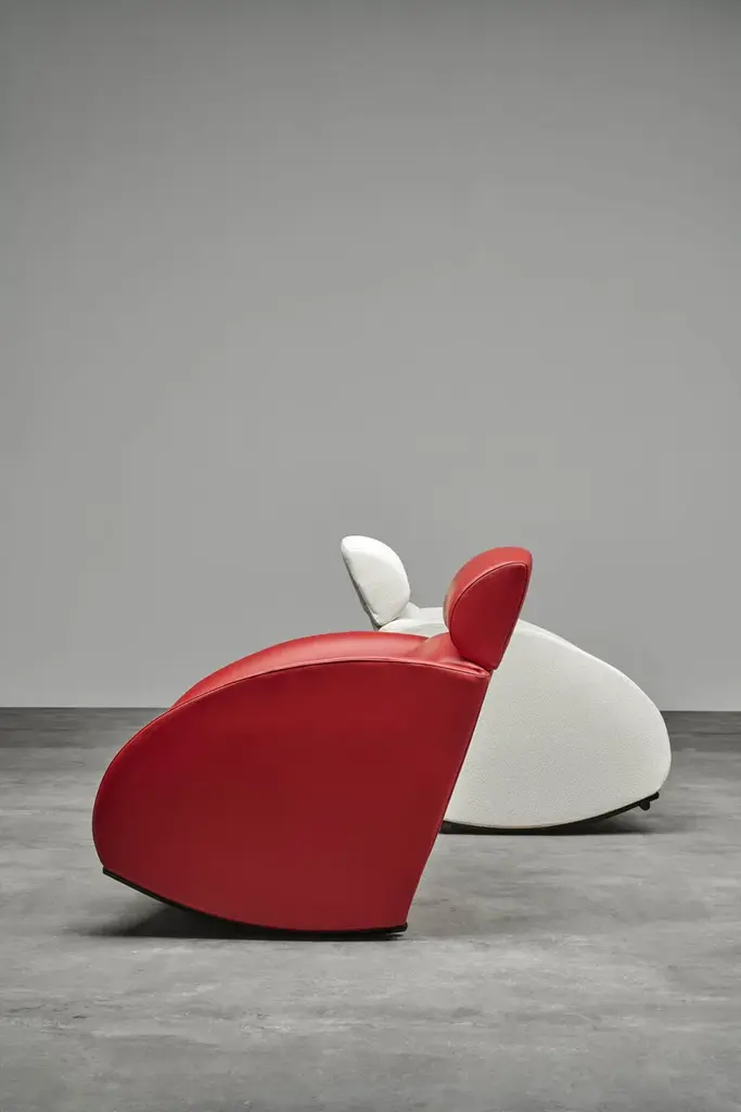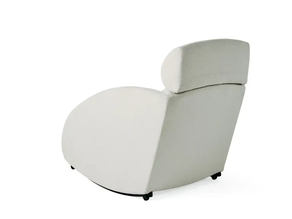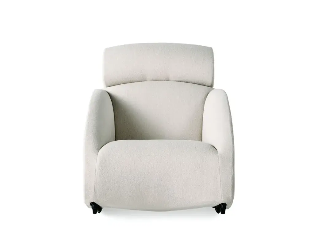“A relaxing and continuous lullaby in the welcoming embrace of a Mama, always ready to cuddle; this is the spirit of the armchair that comes alive cuddling and cradling in the domestic space, involving the whole body from head to toe. ” Denis SantachiaraRocking armchair with adjustable headrest. Internal structure in steel tubing. Filler in flexible polyurethane, cold-processed without CFC.