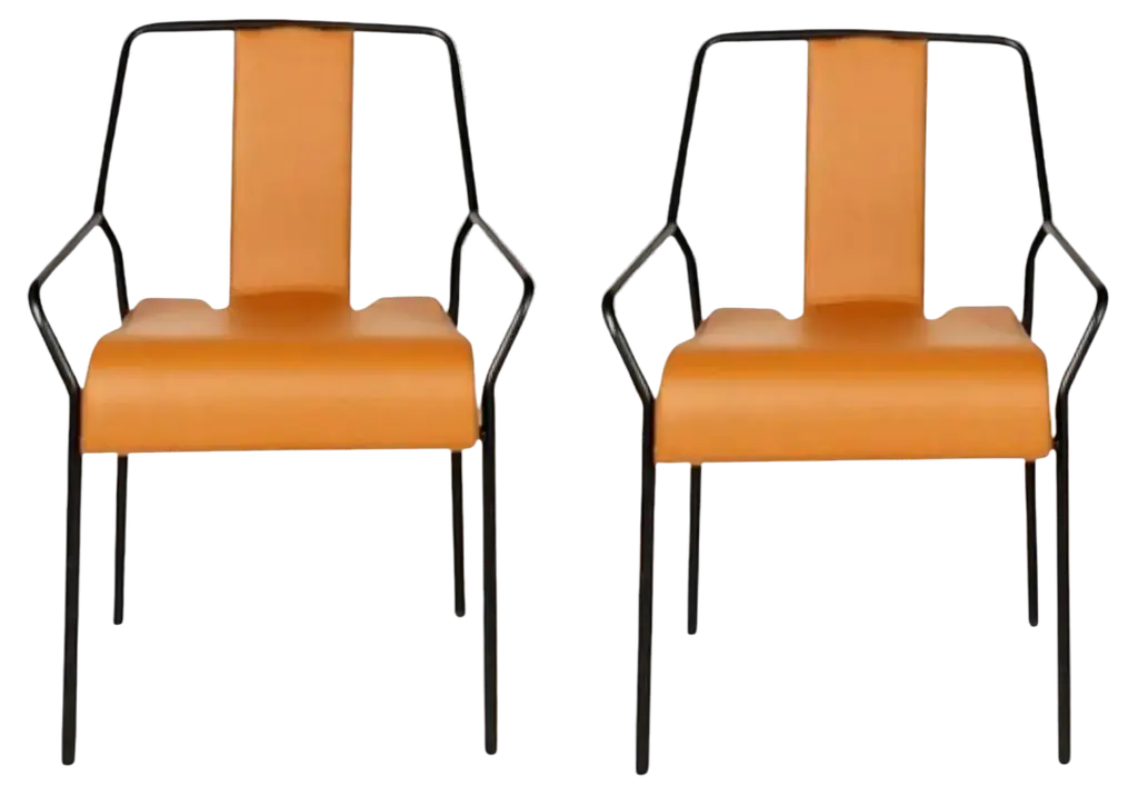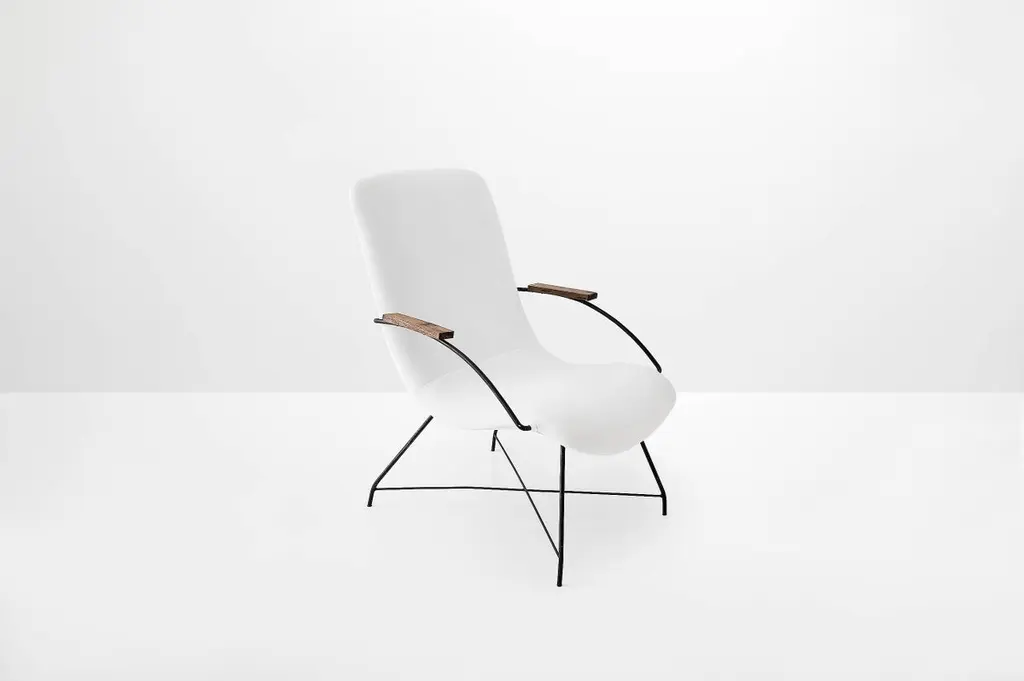 Martin Eisler (1913-1977) & Carlo Hauner (1927-1997)Pair of armchairsManufactured by Forma MoveisBrazil, 1950sBlack painted metal, fabric upholsteryMeasurements66 cm x 80 cm x 94h cm.26 in x 35 in x 37h in.LiteratureBrazil Modern, the rediscovery of 20th century Brazilian furniture – Aric Chen, 2016.Martin Eisler (Vienna, Austria, 1913 - São Paulo, Brazil, 1977), was an architect and furniture designer. He was part of a group of European architects and designers who left Europe during the chaos of the Second World War and went to live and work in Brazil. Eisler stood out amongst this group of creatives, his work was at the forefront of modern furniture design in Brazil which flourished through the 1950s and 1960s in the region. The work of Martin Eisler in partnership with Carlo Hauner (1927-1996) was of particular significance.Eisler left Europe in 1938 due to the rise of fascist regimes. He first lived in Argentina, where he was settled and worked as an architect, set designer and interior designer, he opened up an interior design firm Interieur Forma. In 1940, he married Rosl Wolf, the daughter of German immigrants. Born in Brescia in 1927, Carlo Hauner studied technical drawing and drawing at the Brera Academy in Milan, Italy. In 1948 he successfully participated in the Venice Biennale after which he moved to Brazil, where he dedicated himself to the design of textile, ceramics, furniture and architecture. In only a very short time he founded a furniture production company and purchased a factory from Lina Bo Bardi and her husband Pietro Bardi, renaming it Móveis Artesanal. In 1953 Hauner met Martin Eisler, who was looking for help to produce furniture for the home of his brother-in-law, Ernesto Wolf. Eisler reached out to Hauner and the rest is history. The two men connected and with Wolf’s financial backing, they opened Galeria Artesanal (a store for their company Móveis Artesenal) on a busy street in São Paulo. Being highly ambitious and with an eye on the international market as well as the upcoming office market, Móvies Artesanal later changed into Forma. Along with Oca, Forma became one of the biggest names in Brazilian furniture production. Even managing to attract an exclusive license to sell Knoll furniture, bringing big names in international design such as Mies Van Der Rohe, Charles Eames and Harry Bertoia to the Brazilian furniture market. Hauner and Eisler’s designs are characterized by the use of Brazilian woods, thin tubular frames and a range from furniture, to ceramics and textiles. Some of their most famous designs are the “rib” lounge chair, the "concha/haia" chair or “reversible” lounge chair, both shown in this exhibition. In 1958 Hauner decided to return to Italy to open Forma di Brescia, which catered to i.g. the embassy of Brazil in Rome and Vatican City. Eventually Hauner sold his part of the company, leaving Eisler solely at the helm, to focus himself on painting and the making of wine on Salina, a little island just above Sicily. After a full life the artist, designer and serial entrepreneur died in 1997. Forma prospered during the 1960s and 1970s, until Martin Eisler died in 1977. His original company in Argentina still exists and at the moment is the sole heir to Hauner and Eisler’s Heritage.
