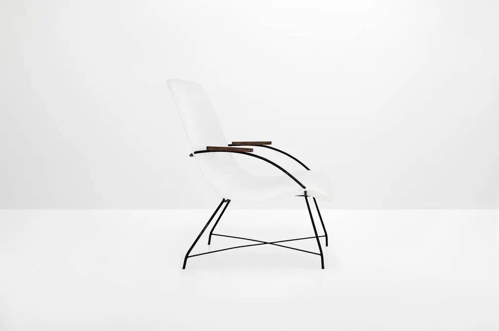Martin Eisler & Carlo Hauner Midcentury Brazilian Armchairs White Fabric Metal
