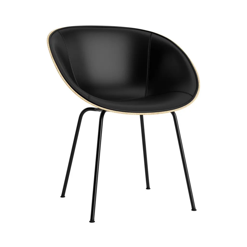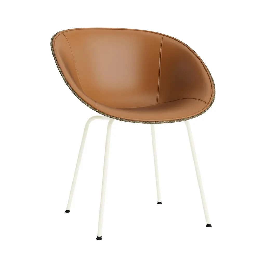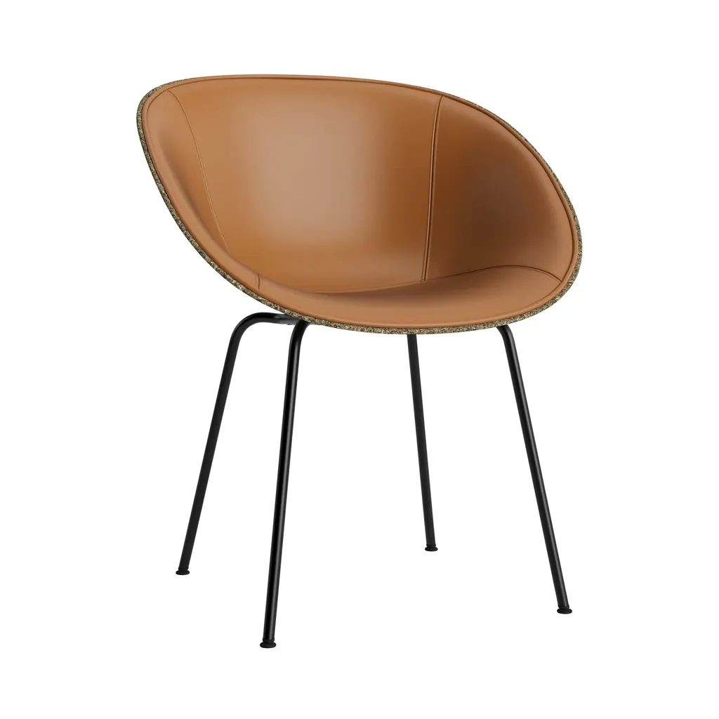 With its inviting contours and eco-friendly design, Mat’s molded armchair gets a personalizing touch with fine fabric or leather front upholstery and a choice of leg colors. The attractively variegated shell updates a Nordic classic in a recyclable composite material made of hemp and seaweed, an innovation from Danish designers Foersom & Hiort-Lorenzen.