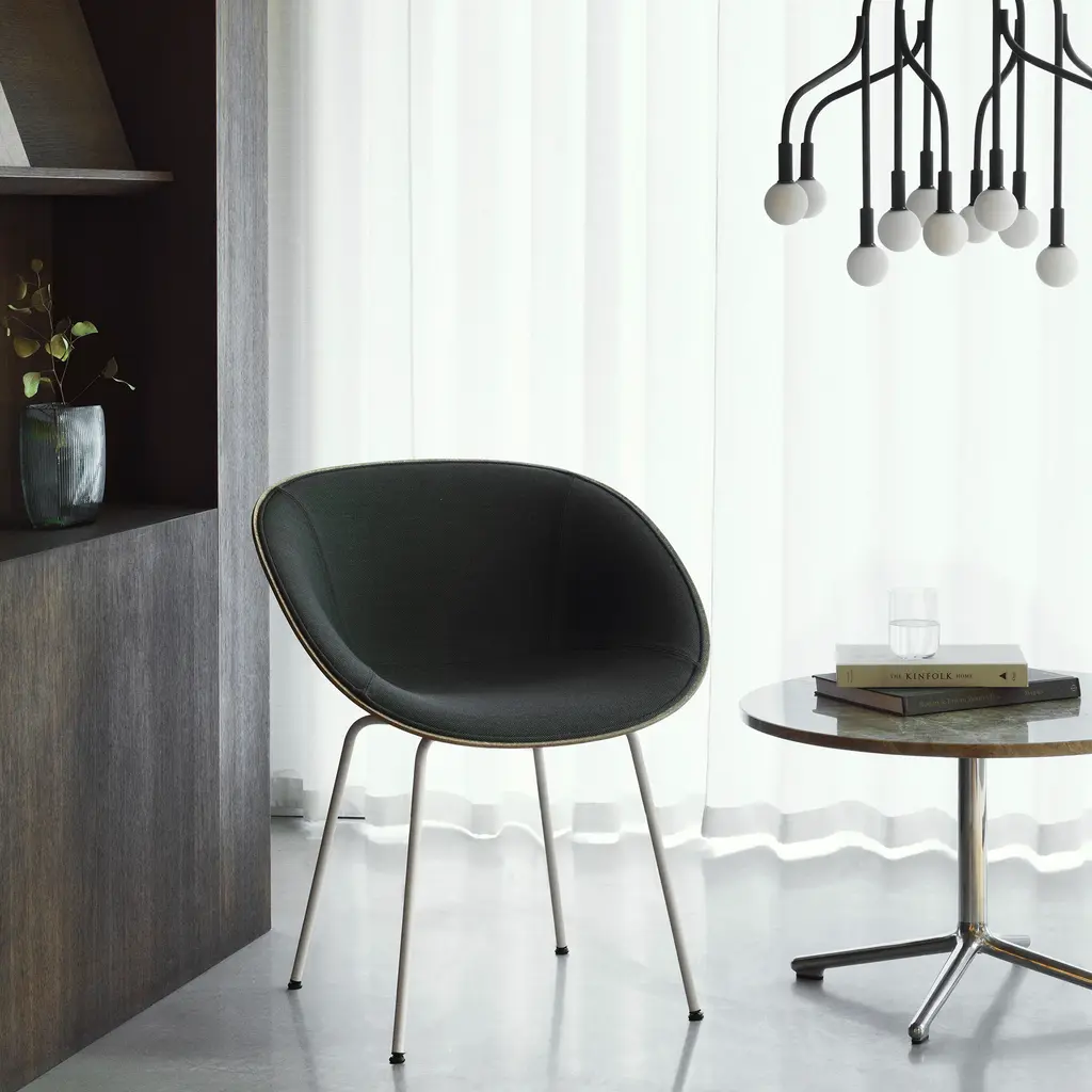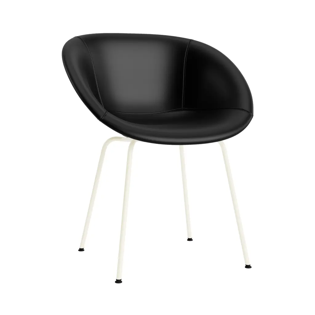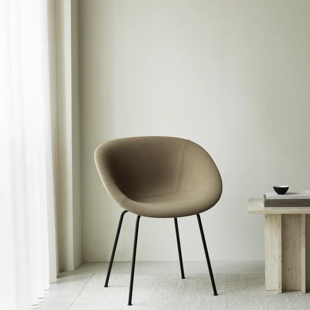 Swathed in a selection of fine fabric or leather, Foersom & Hiort-Lorenzen’s sustainable take on a classic shell armchair gets a completely custom look. Underneath, the molded form is made from an innovative and fully recyclable composite using hemp and eelgrass seaweed—and the seating also offers a choice of steel legs in black or cream powder coat.
