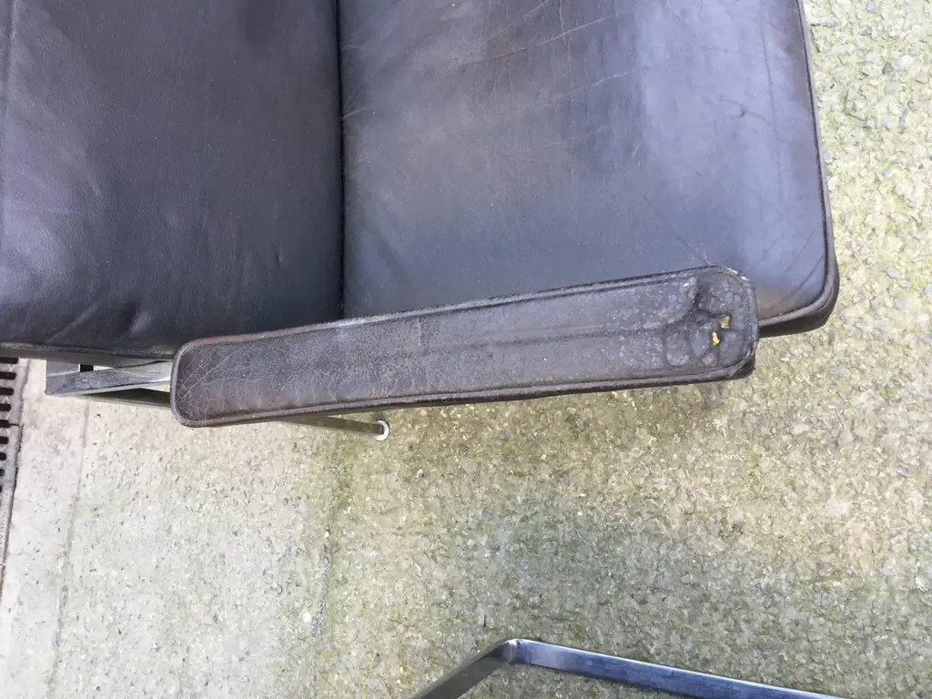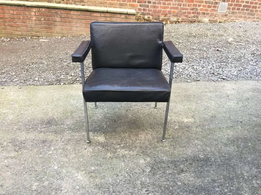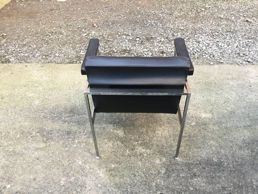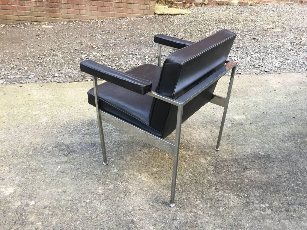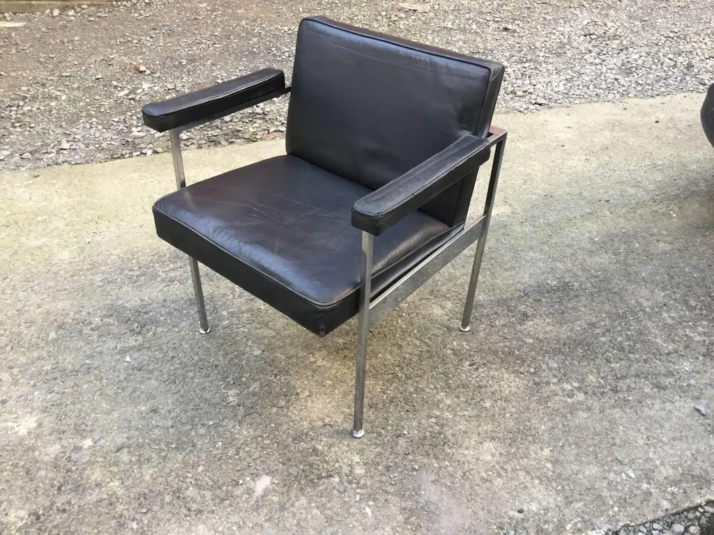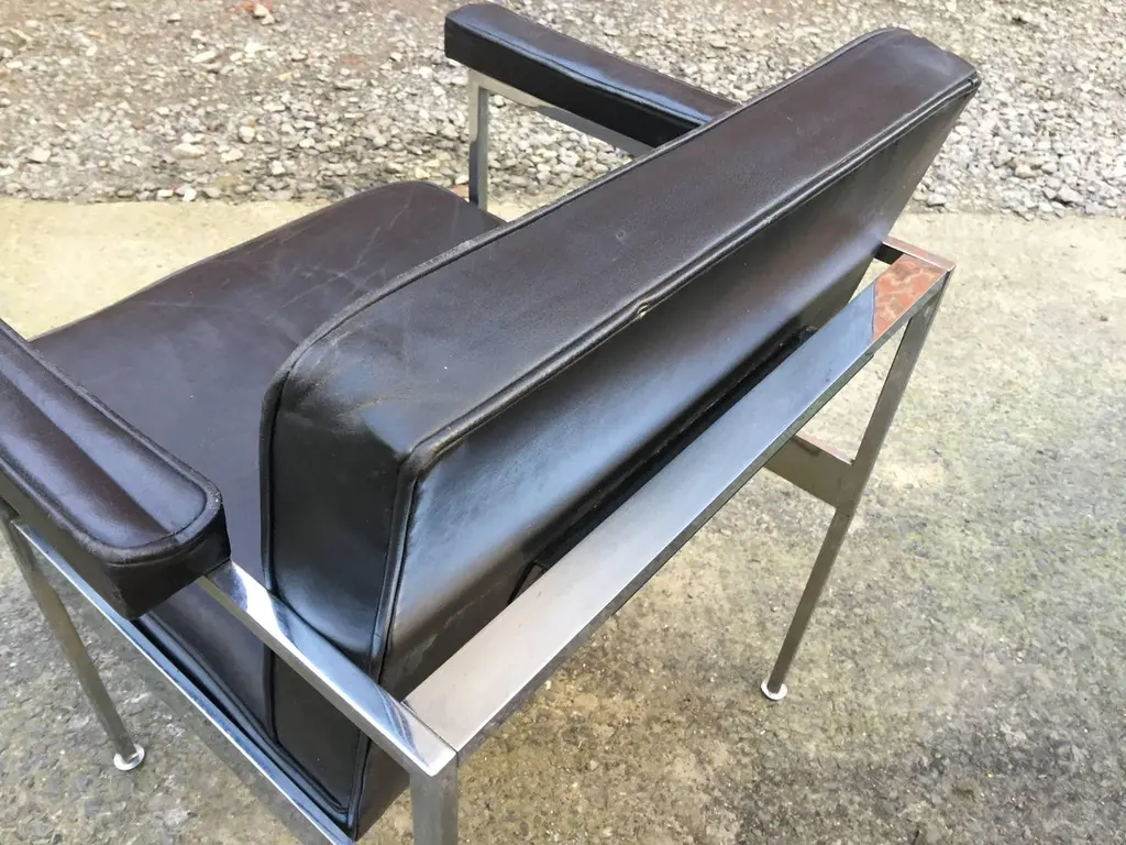 Maurice Rinck, pair of 1960s desk armchairs in leather and chromed metal.