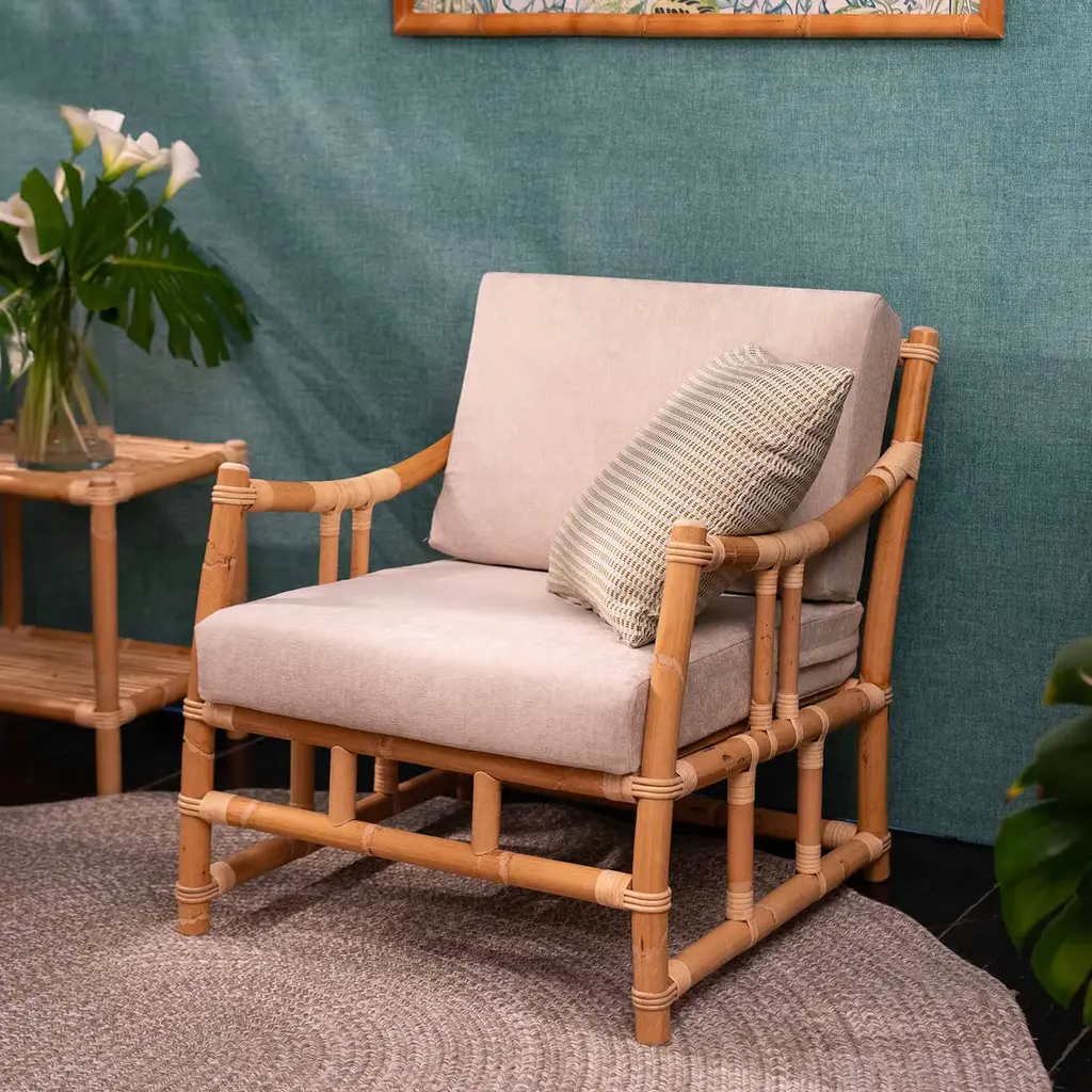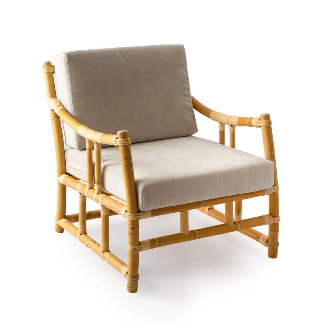 Experience the allure of nature with the Maya Armchair, a distinguished addition to any living space. Crafted from natural materials such as manao and manila cane with bark, this armchair embodies the essence of the Jungle Revival collection, which celebrates authentic beauty and artisanal craftsmanship. The organic shapes and intricate textures of its construction bring a sense of tranquility and exotic charm, effectively transforming spaces into serene oases. Designed to harmonize traditional techniques with contemporary aesthetics, this armchair is perfect for those seeking to integrate a touch of nature into their home decor. The included seat and back cushions can be customized, allowing for personalized comfort and style that caters to individual preferences. Contact the Concierge for more details.