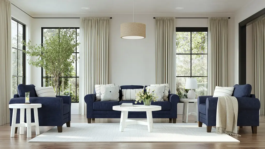 Make your living room or den comfortable and on-trend with the McKinley chair-and-a-half. Its simple yet stylish design incorporates chic details, like matching piping and gently rolled arms, for elegance that's beautifully subtle. As for this piece's utility, it's built to withstand your family with its reversible seat and back cushions. Plus, the reversible throw pillow lets you switch between solids and stripes whenever you feel like mixing it up.