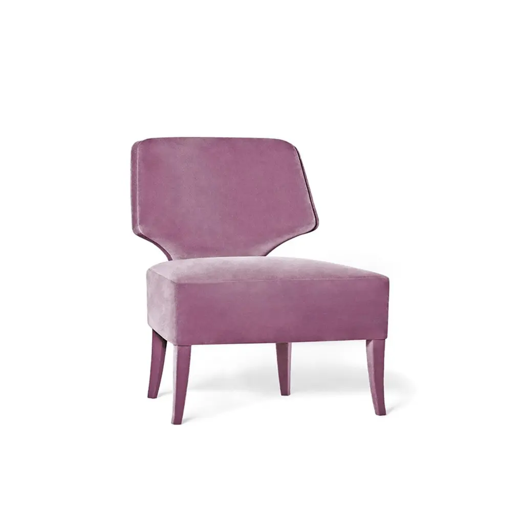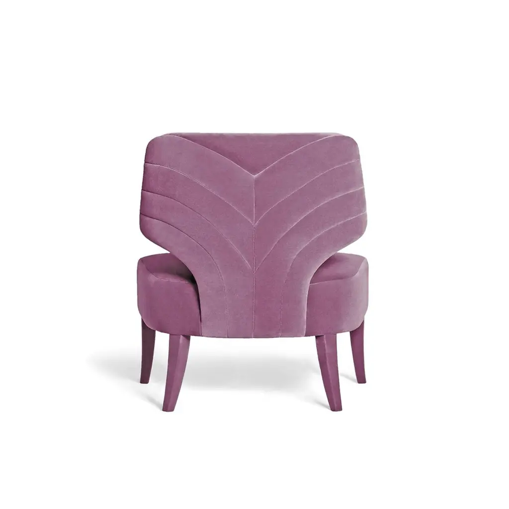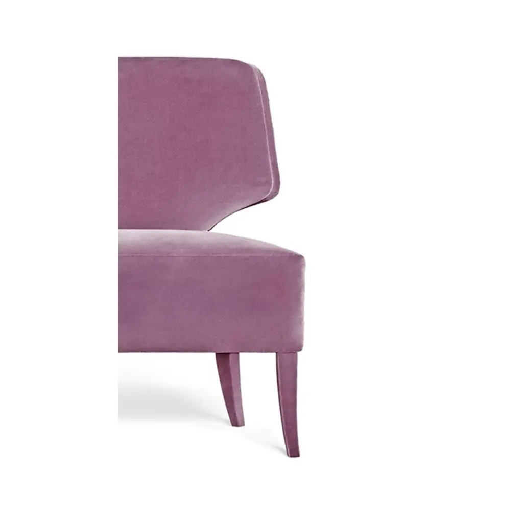 Melody Armchair by MunnaDimensions: D 75 x W 76 x H 80 cm. SH: 45 cm.Materials: Wood, foam, and upholstery.Finish: Cotton Velvet, ref. Lilac, CV15.Available in all Munna fabrics except Wild Silk. Available in client’s ownmaterial. Available upholstered, Rosewood or Ebony veneer, solid Walnut, Wengé stain, or lacquer in all RAL colors, in matt or gloss. Fire retardant interlining is available on request. Handmade in Porto. Please contact us.Established in Porto in 2008, Munna is a furniture design brand renowned for creating handmade upholstery with unmatched craftsmanship, seamlessly blending noble materials and timeless design, for both commercial and residential projects.Made by hand in Porto, Munna’s pieces honor the profound heritage of craftsmanship, while drawing inspiration from history’s most influential artistic periods. Munna’s pieces are made of the finest fabrics such as cotton velvet, twill, leather, and silk; the finest wood veneers, such as ebony, walnut, and rosewood; sumptuous gold, silver, and copper leaves, metal details in brass, nickel, and copper, and superior lacquers.