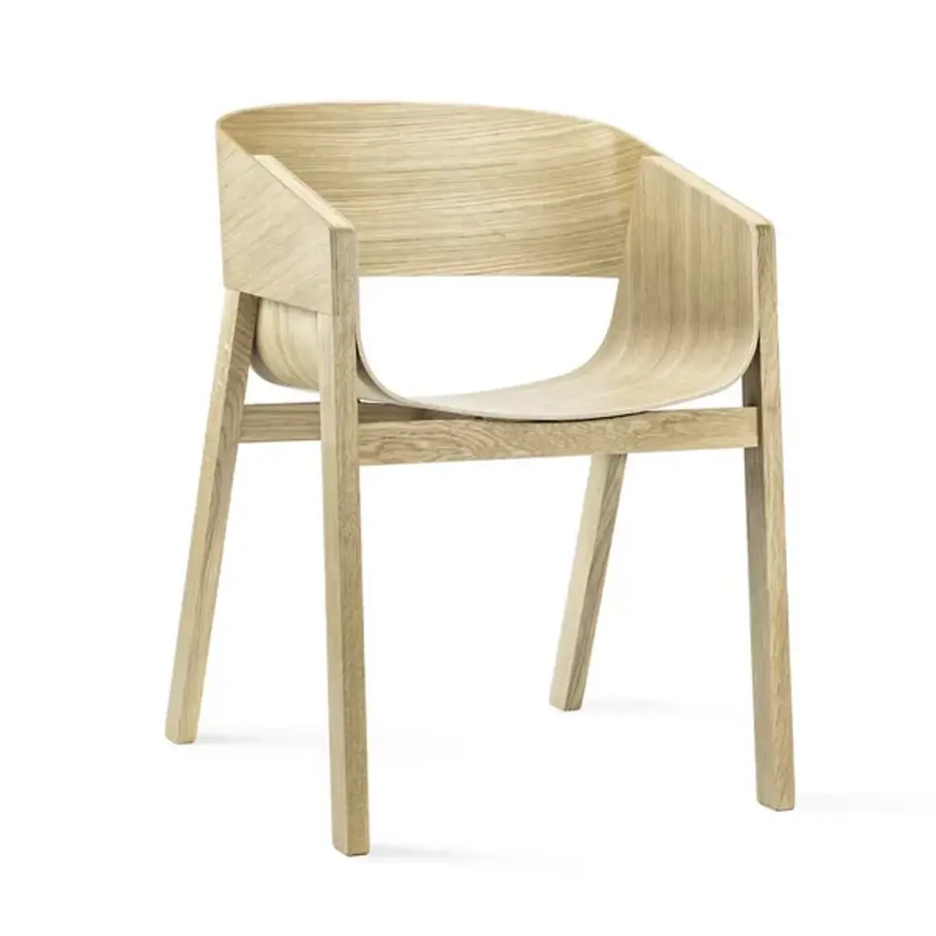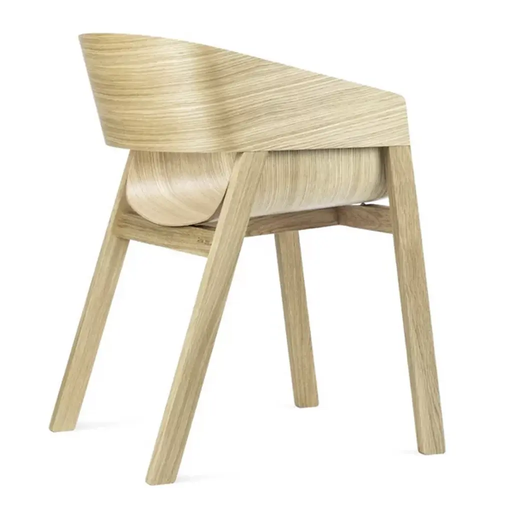 Provide lasting retro-style appeal to interiors with the open and expressive design of the Merano Armchair from Ton. An Alexander Gufler design that uses four angular oak legs to support two shells of slender, strong pressed plywood that act as a seat and a wraparound back, delivering an airy, open appeal. The clever curves contrast well with the angular legs below the seat, while the BIFMA compliance adds a reassuring touch.