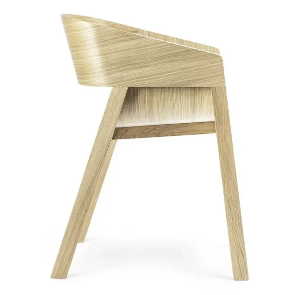 Provide lasting retro-style appeal to interiors with the open and expressive design of the Merano Armchair from Ton. An Alexander Gufler design that uses four angular oak legs to support two shells of slender, strong pressed plywood that act as a seat and a wraparound back, delivering an airy, open appeal. The clever curves contrast well with the angular legs below the seat, while the BIFMA compliance adds a reassuring touch.