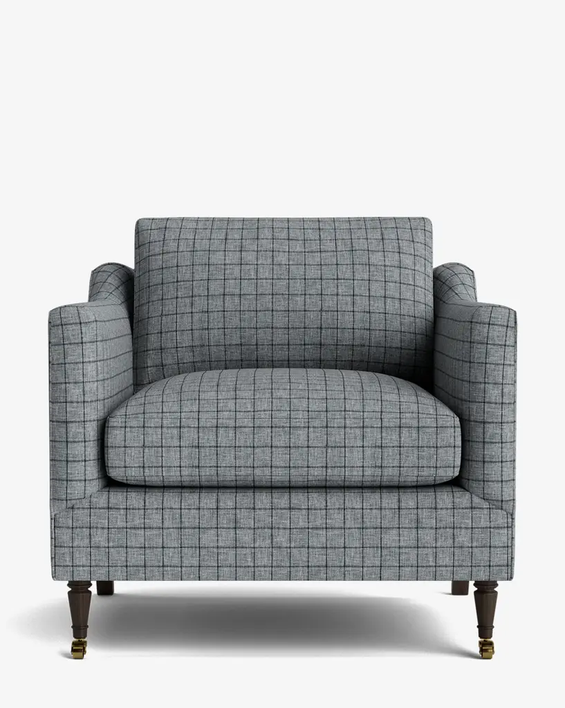 Simple seating never looked this good, our plain accent Merry chair is polished, hand upholstered, and manufactured in Illinois. Each piece is made to order and features a standout design feature that makes it just a touch unusual. From the sturdy wooden legs to the magnificent fabric, every one of our made to order chairs is one of a kind. Whether you're searching for a basic, classic piece to add to your living room or something special for a reading nook, we have you covered.