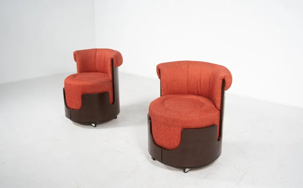 Mid-Century Modern Pair Of Small Armchairs, Italy, Original Fabric
