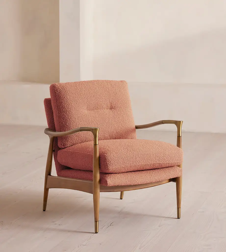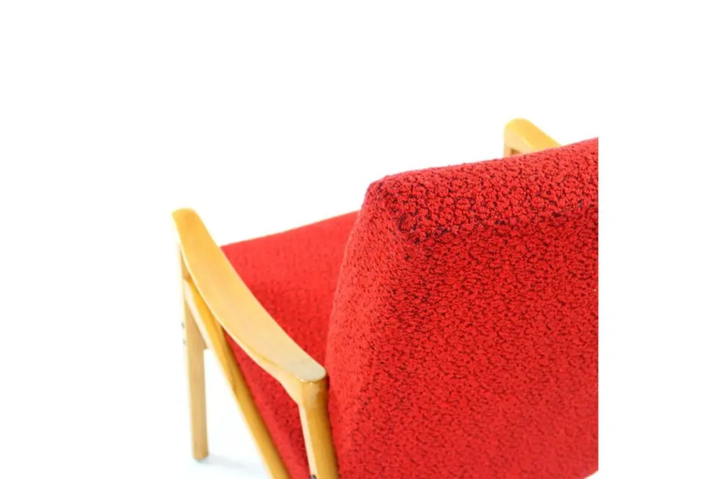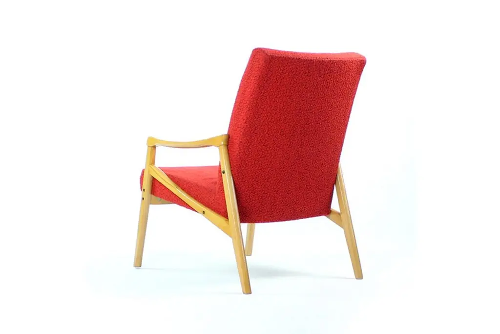 Midcentury Armchair In Light Beech & Red Fabric By Interier Praha